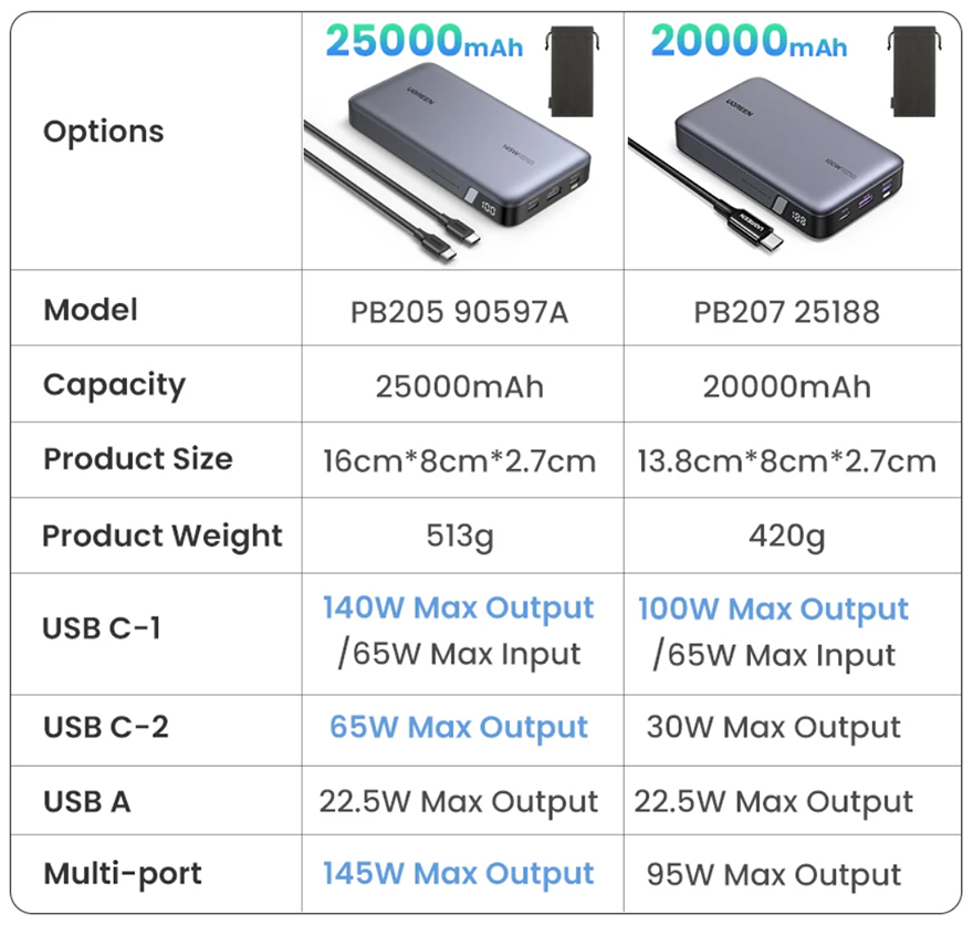 69.59US $ 60% OFF|UGREEN 140W Power Bank Portable 25000mAh PD Fast Charging PowerBank for Laptop Notebook Xiaomi 13 Fast Charge