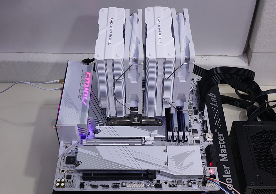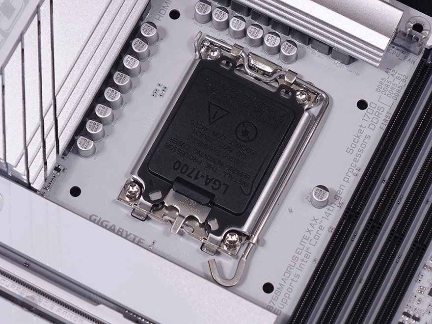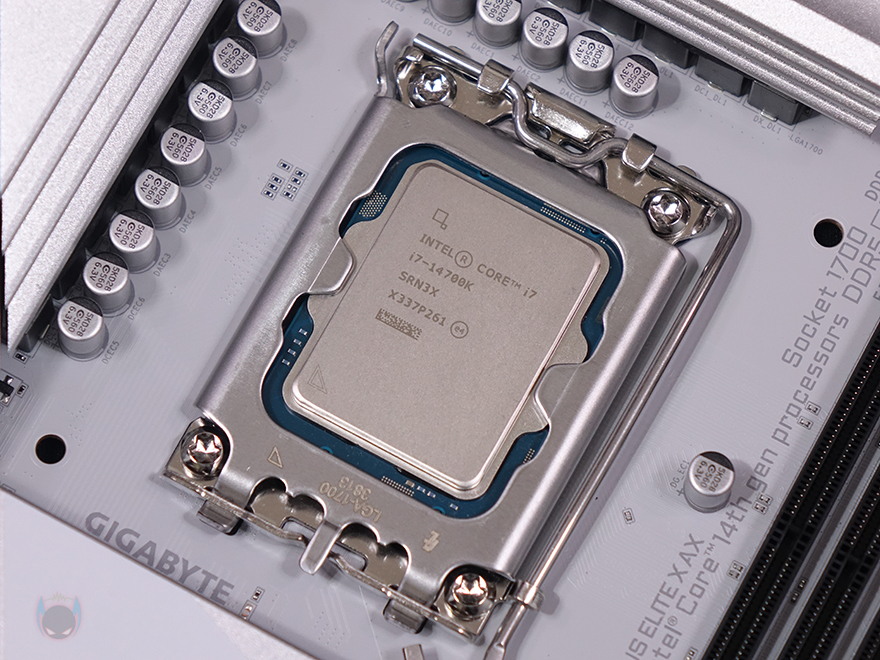 직접 기가바이트 B760M AORUS ELITE(어로스 엘리트) X AX 메인보드를 사용해 보는데, 시작에서 언급했듯이 이번 화이트 색상으로 출시되는 메인보드 중 인텔용 Z790/B760 칩셋 메인보드는 인텔 14세대 출시에 맞춰서 새롭게 추가된 모델입니다. 그래서, B760M AORUS ELITE X AX 메인보드 역시 인텔 14세대 CPU를 지원하며, 기가바이트의 국내 정식수입사인 (주)피씨디렉트에서 인텔 CPU 유통도 맡고 있죠. 리뷰에선 인텔 14세대 i7-14700K CPU를 장착했으며, 화이트 콘셉트 메인보드에 맞춰서 쿨러와 메모리도 화이트 색생으로 장착했습니다.