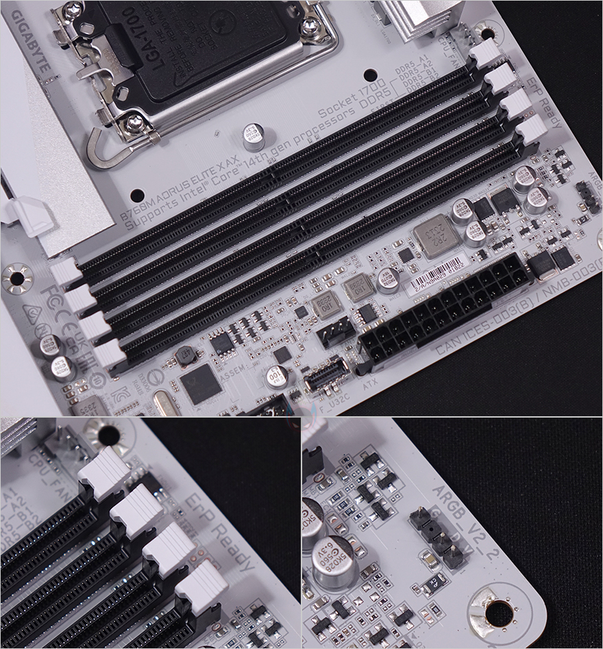 끝으로, B760M AORUS ELITE X AX 메인보드는 여러 번 언급했지만, 화이트 콘셉트를 가졌습니다. 시작에서 언급했듯이 화이트 콘셉트로 조립 PC를 구상하면 가장 마지막 퍼즐은 메인보드라할만큼 시장에서 제품이 많지 않습니다. 그래서, 화이트 콘셉트 메인보드까지 맞추게 되면 화이트 콘셉트의 조립PC 완성도가 확실히 한 층 더 높아지죠. 실제로 단순히 화이트 색상 PC케이스에 B760M AORUS ELITE X AX 메인보드와 기존에 먼저 나왔던 B760M AORUS ELITE 메인보드만 장착 비교해 봐도 차이를 쉽게 느낄 수 있습니다. 그만큼 화이트 콘셉트 조립 PC를 구상할 때 메인보드의 색상이 결정적일 수밖에 없습니다.
