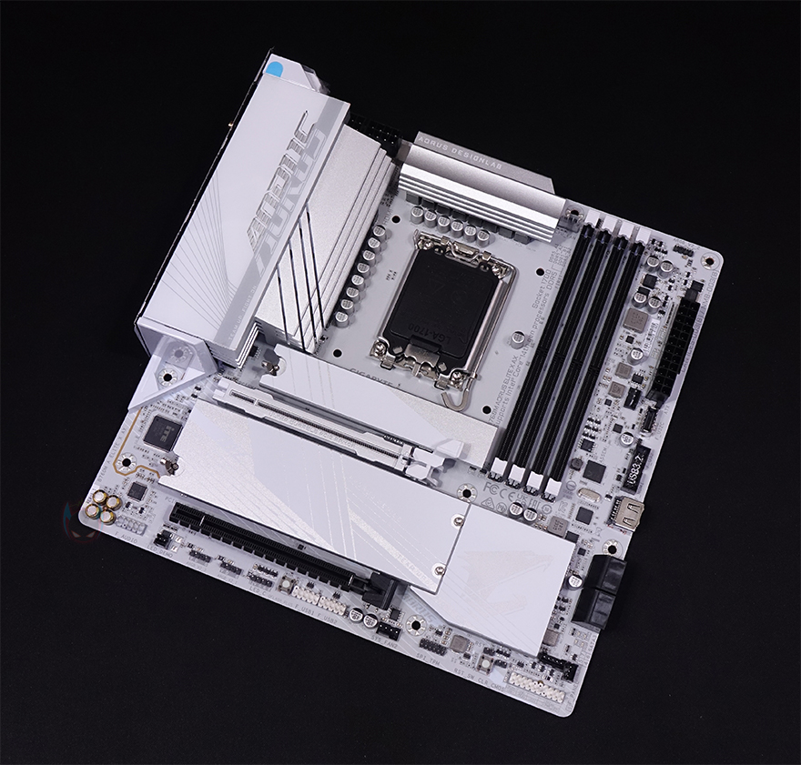 그럼, 본격적으로 기가바이트의 B760M AORUS ELITE(어로스 엘리트) X AX 메인보드의 레이아웃을 살펴보는데, 한눈에 봐도 가장 먼저 눈에 들어오는 건 화이트 색상입니다. 특히, PCB기판까지 화이트색상으로 적용했고, 뒷면도 어로스 문구와 함께 나름 디자인 처리를 했습니다. 그리고, 시작에서 잠깐 언급했듯이 이번 인텔 14세대 지원과 함께 기가바이트가 Z790/B760 메인보드를 선보이면서 화이트 제품을 선보인 동시에 AMD 칩셋 그러니깐 X670/B650 칩셋 메인보드로도 화이트 색상을 선보였습니다. 참고로 이는 이번에 메인보드 제조사들 중 기가바이트가 가장 폭넓게 화이트 색상 메인보드들을 선보인 것이고, 원래부터 시장에서 화이트 색상 제품이 많지 않았기 때문에, 출시와 동시에 큰 인기를 끌고 있습니다. 실제 공식수입사인 (주)피씨디렉트 스토어에 들어가 보면 이미 품절된 제품들도 있죠.