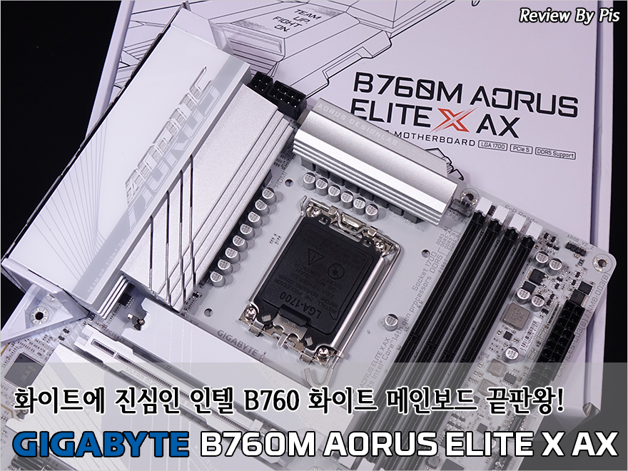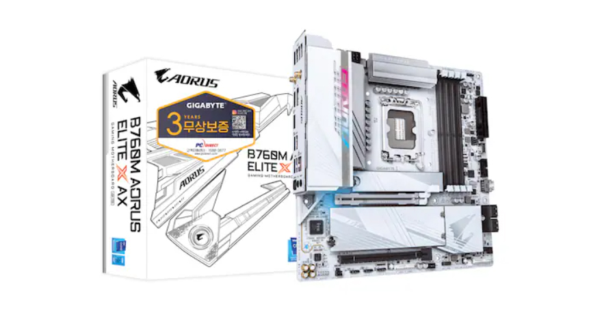 이제 겨울철이 다가오죠. PC시장에서도 겨울철이 되면 조립 PC를 구상하는 소비자들 중 화이트 콘셉트로 맞추려는 소비자가 늘어납니다. 물론, 평소에도 깔끔함을 선호하는 소비자라면 계절과 상관없이 화이트 콘셉트로 조립 PC를 맞추죠. 화이트 콘셉트로 조립 PC를 맞춘다는 건 PC 구성품들을 최대한 화이트 색상으로 맞추는 걸 의미하는데, 예전에 비해 PC케이스, 쿨러, 팬 같은 제품들은 화이트 색상이 보편화되어서 기본적인 화이트 콘셉트를 맞추는데 어려움이 없습니다. 하지만, 좀 더 완벽하게 화이트 콘셉트로 맞추려는 소비자의 경우는 메인보드와 그래픽카드까지 화이트로 맞추죠. 특히, 메인보드 같은 경우에는 그래픽카드보다 화이트 색상 제품이 훨씬 적은 편이라 화이트 콘셉트 조립 PC의 마지막 퍼즐은 늘 메인보드입니다. 웬만한 화이트색상 메인보드를 선택하려면 고가형 제품을 선택해야 하죠. 하지만, 최근에 기가바이트는 이번 인텔 14세대 CPU 출시와 함께 새롭게 선보이는 Z790/B760 심지어 AMD 칩셋 메인보드까지 화이트 색상 제품을 대거 선보였습니다. 여기서 대거 선보였다는 건 보급형부터 고급형까지 다 있다는 거죠. 오늘은 그중 인텔용 메인보드에서 현재 보급형이라 할 수 있는 B760 칩셋으로 화이트 색상을 갖춘 B760M AORUS ELITE(어로스 엘리트) X AX 메인보드를 한 번 만나볼까 합니다. 그럼,