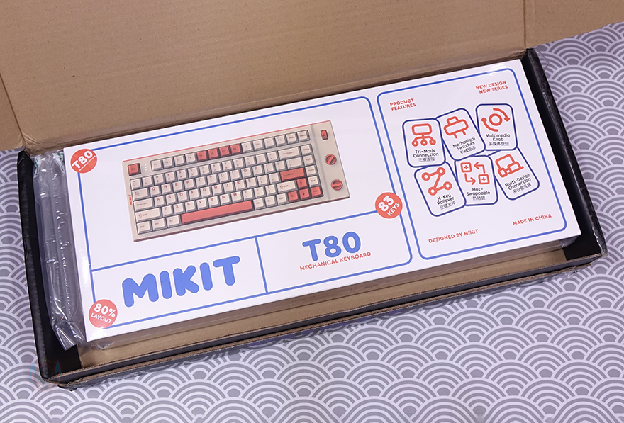 MIKIT T80 TKL hot-swap keyboard comes with a scroll wheel & Rotary knobs, that allow adjusting volume and RGB effects easily. Tri-mode connection modes including Bluetooth 5.1, and wireless 2.4GHz.