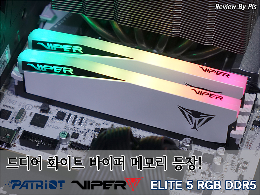 인텔은 2년 전부터 AMD는 작년부터 최신 CPU 등장으로 DDR5 지원을 시작했죠. 물론, DDR5의 인기가 높아지기 시작한 건 사실상 올해부터라고 할 수 있습니다. DDR5 등장 초기에는 저전력만의 특징을 강조하다 보니 큰 매리트가 없었지만, SK 하이닉스 메모리 모듈이 높은 오버클럭 수율을 자랑하면서 소비자들 사이에 알려지고, 여기에 CPU는 이제 기본적으로 고-클럭을 갖추고 나오다 보니 CPU 오버클럭 매리트는 점점 감소하면서 메모리 오버클럭 매리트가 높아져 DDR5가 본격적으로 자리 잡았습니다. 방금 언급한 SK 하이닉스의 메모리 모듈 정확히는 A다이(Die)와 M다이 모듈을 말하는 건데, 이를 적용한 DDR5는 메모리 클럭을 좀 수월하게 오버클럭할 수 있습니다. 문제는 메모리 제조사들이 이런 정보를 대놓고 공개하지 않기 때문에 소비자들이 이런 모듈을 적용한 DDR5 제품을 찾고 서로 공유하고 있죠. 하지만, 미국의 대표적인 메모리 전문업체 패트리어트(Patriot)는 한국에서 예외입니다. 정식 수입사인 (주)파인인포(http://www.pineinfo.co.kr/)를 통해 첫 모델로 출시한 시그니처라인 DDR5(https://piscomu.com/4265) 제품부터 하이닉스 A다이에 PMIC칩까지 언락을 강조하면서 출시했죠. 그리고, 이는 소비자들에게도 좋은 반응 얻었습니다. 이제는 본격적으로 여기에 패트리어트의 게이밍 브랜드를 국내에 출시했는데, 바로 VIPER(바이퍼) 라인업입니다. 물론, 패드리어트의 VIPER 브랜드는 메모리뿐만 아니라 SSD, 주변기기 등 다양한 제품군을 갖추고 있죠. 그래도, 가장 상징적인 제품군은 메모리와 SSD라 할 수 있습니다. 그리고, VIPER 메모리 제품군에는 DDR5 제품 같은경우 현재 3가지 시리즈 라인업으로 갖추고 있는데, 그중 올해 새롭게 추가된 VIPER Elite 5(바이퍼 엘리트 5)는 화이트 콘셉트 제품이죠. 그래서, 이번 시간에는 패트리어트의 VIPER Elite 5 RGB DDR5 메모리는 한 번 살펴보도록 하겠습니다.