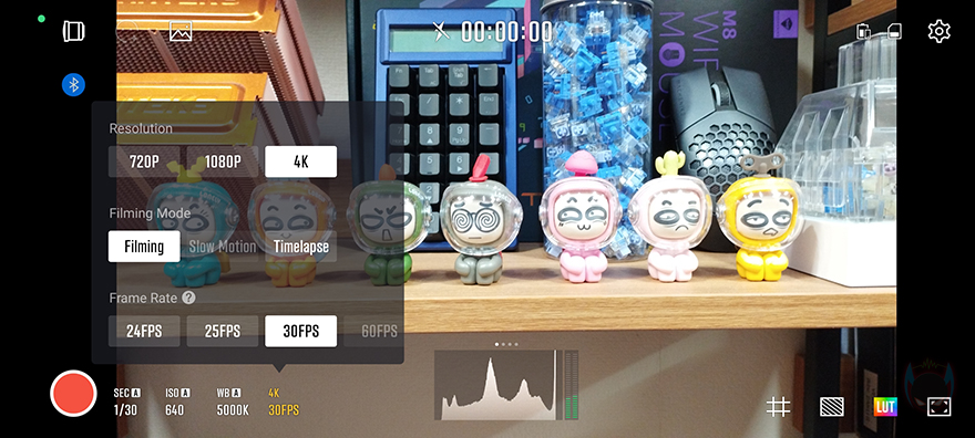 그리고, 또 하나의 앱은 전용앱이 아닌 외부 앱으로 StaCam인데, 동영상 촬영옵션으로만 다룰 수 있는 앱이며, 가로 모드로만 사용할 수 있습니다. 물론, 일부 스마트폰에선 스마트폰 자체 옵션보다 더 많은 옵션을 지원하기 때문에 좀 더 나은 옵션으로 촬영하고 싶을 때 사용하면 유용합니다. 끝으로, 배터리 충전 같은 경우에는 앞서 확인한 모드 표시부분이 배터리 잔량을 의미하는데, 모드 표시 단어 1개당 20% 단위로 완충이 되면 5개의 모드 단어표시가 점등된 상태로 있습니다.
