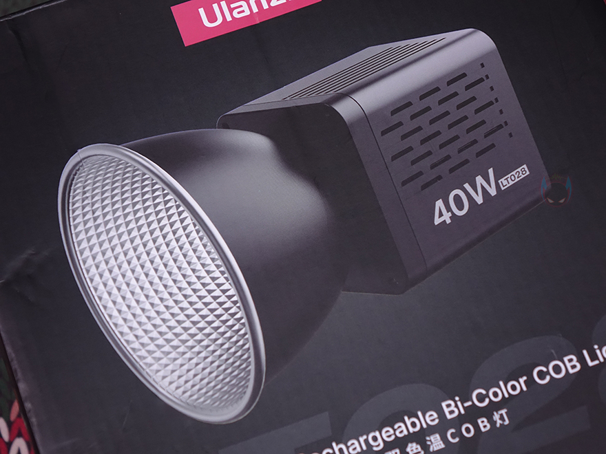 제품박스부터 살펴보면, 박스 전면에 바로 LT028 모델의 제품이미지를 담고 있어서 조명 디자인 미리 확인할 수 있고, 아래에 40W 전력 표시와 함께 충전식 Bi-Color COB 라이트라는 문구를 확인할 수 있고, 배경으로 희미하게 LT028 모델명을 새겨놨습니다. 이 문구들만 봐도 이 제품의 가장 큰 특징이 무엇인지 쉽게 파악이 되죠. 이외에는 제품박스에 추가적인 내용은 없기때문에, 바로 박스를 열어보면 외부 충격방지를 위해 우레탄-폼 포장재를 사용한 것을 확인할 수 있습니다.