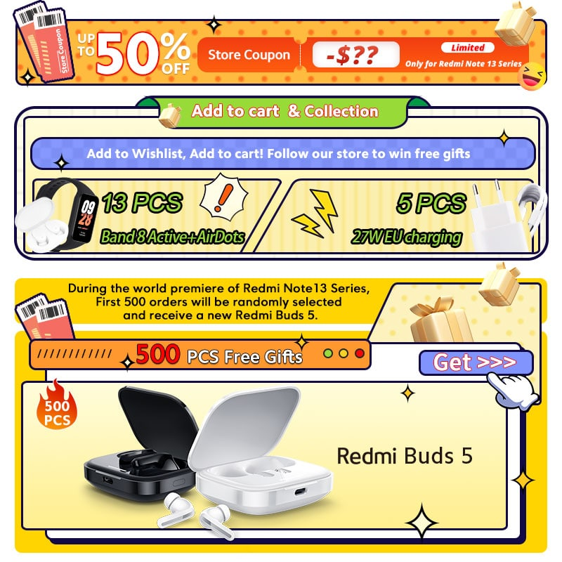 행사 참여방법은 간단하다. 출시되는 신제품들을 장바구니에 담아놓고, 일정 주문량에 도달하면 구입한 소비자들 중 랜덤으로 사은품을 증정해준다. 또한, 레드미 노트 13 시리즈 같은경우에는 한정수량으로 50% 할인쿠폰을 제공해준다.