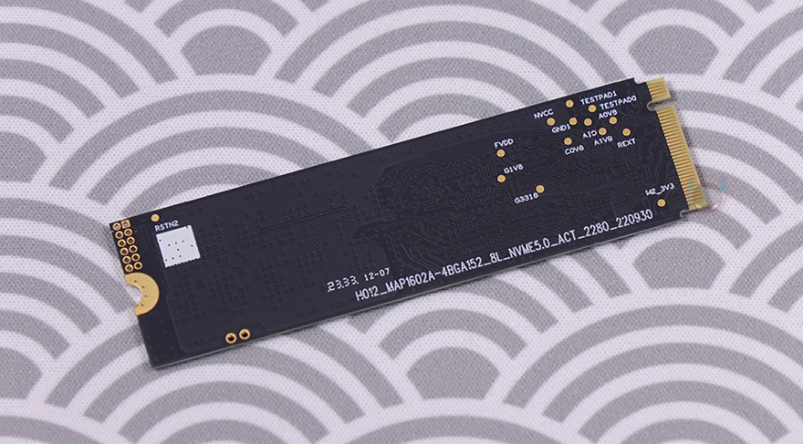 그럼, 실리콘파워(SiliconPower) US75 NVMe SSD 실물을 살펴보는데, 사이즈는 2280이며, PCB 색상은 블랙(Black)에 한쪽에만 칩셋이 적용된 단면형태이고, 전면에 라벨스티커를 부착하고 있습니다. 라벨스티커에는 모델명과 용량 표기를 확인할 수 있으며, PCIe 4.0x4 규격와 3D 낸드(Nand) 플래시 표기도 추가로 확인할 수 있죠. 라벨스티커를 벗기면 컨트롤러 칩셋과 3D 낸드(NAND) 플래시를 확인할 수 있으며, DRAM은 적용되지 않았습니다. 컨트롤러칩셋은 Maxio의 PCIe 4.0 규격의 MAP1602 칩셋이 적용되었으며, 낸드플래시는 표시된 일련번호형식으로 추측했을 때 YMTC의 3D 낸드플래시라는 걸 짐작해 볼 수 있습니다.