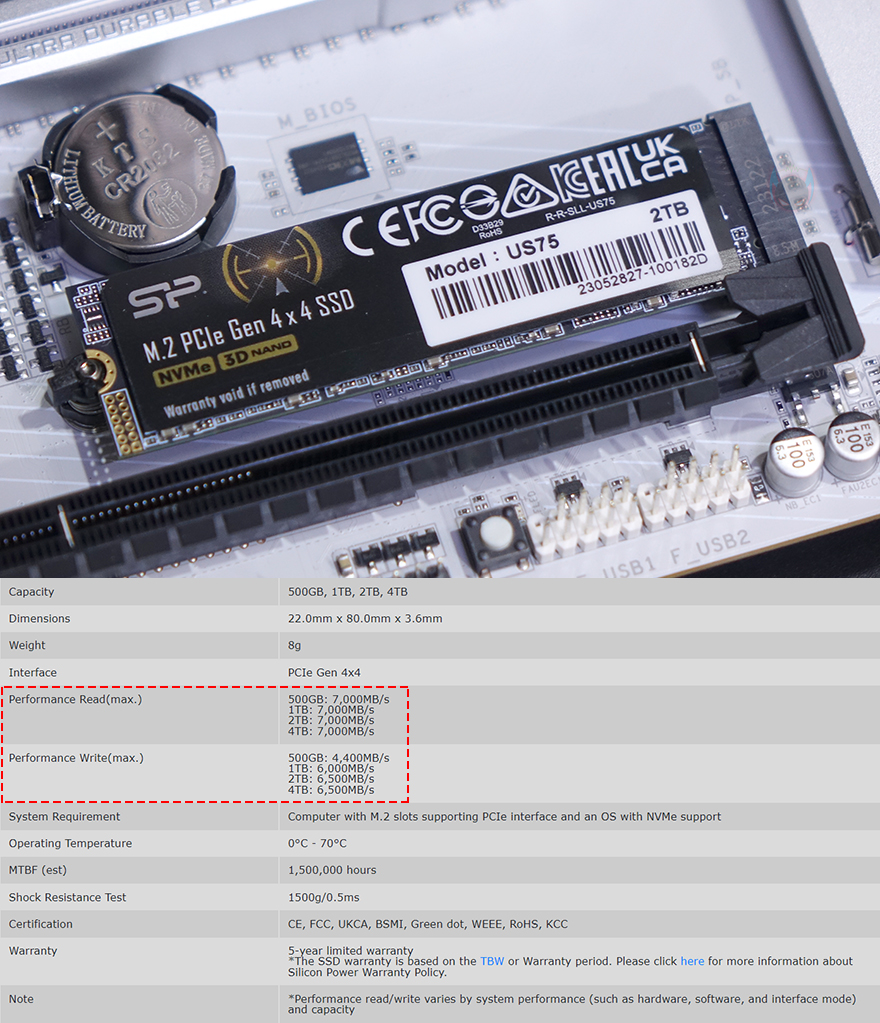 실리콘파워 US75 NVMe M.2 PCIe Gen 4x4 SSD up to 7000MB/s - SSD | 쿠팡