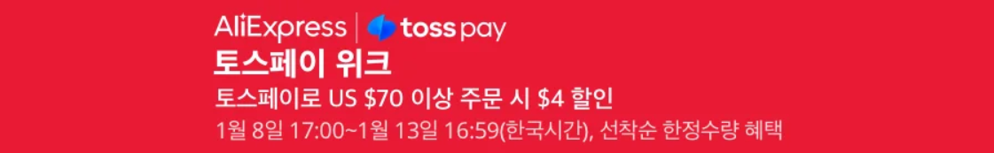 2024년 새해가 시작되었다. 국내 소비자들도 해외직구로 많이 이용하는 글로벌 쇼핑몰 알리익스프레스(http://www.aliexpress.com)는 한국 시간으로 오늘 1월 8일 오후 5시부터 13일까지 2024년 첫 할인행사이자 1월 프로모션 'Winter Sale'을 시작한다. 1월 프로모션은 큰 할인행사는 아니지만, 그래도 할인코드와 결제할인 포함된 행사이다. 혜택에 대해서 간단히 정리해보자면, 일단 결제할인은 토스페이만 적용된다. 70달러이상시 4달러 할인은 받을 수 있다. 그리고, 모든 상품에 적용되는 할인코드는 아래와 같은데, 큰 할인규모는 아니지만 최대 50달러까지 할인 받을 수 있다.