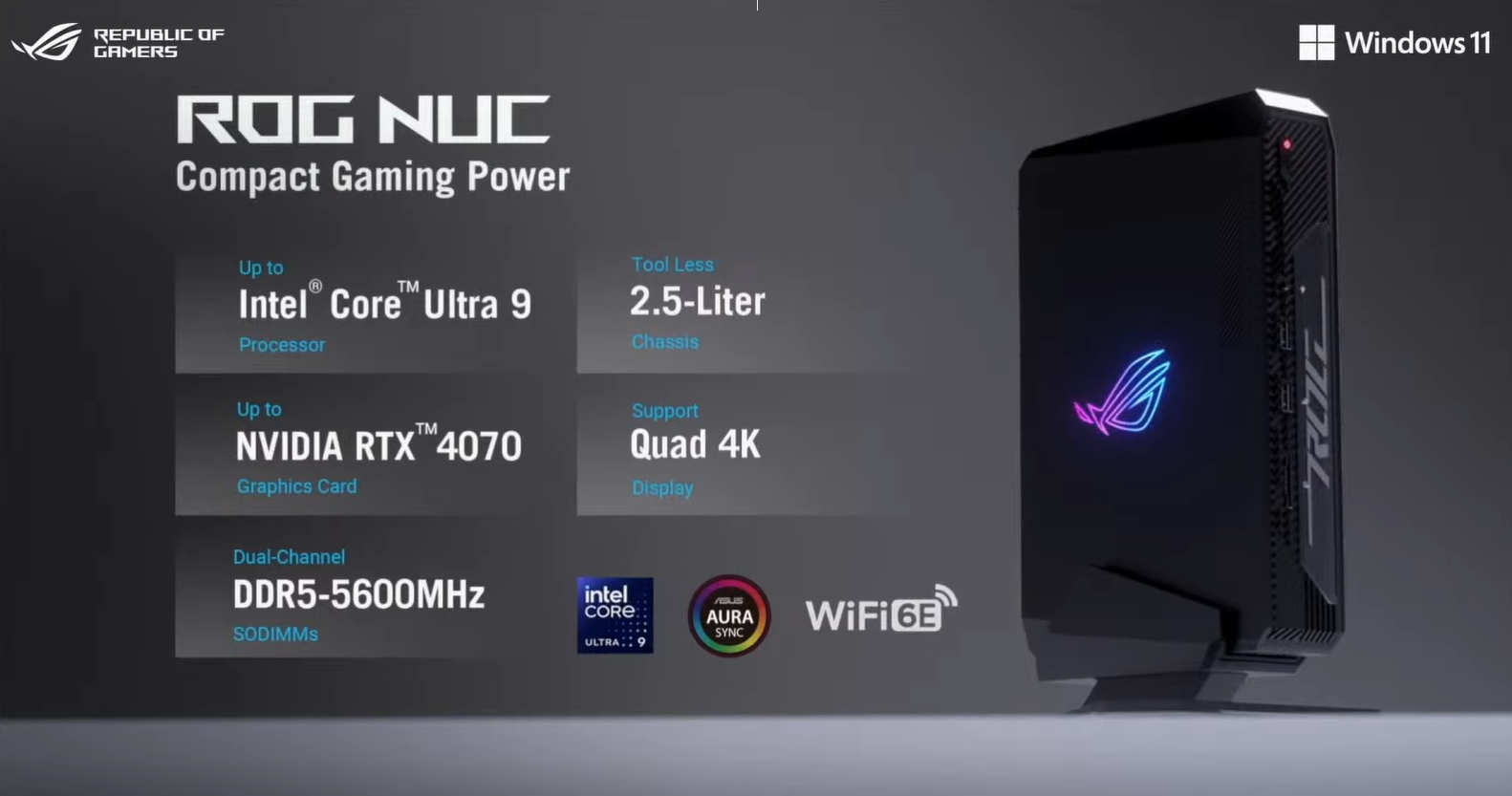 또한, 게이밍 NUC 미니PC도 ROG 제품으로 선을 보였는데, ROG NUC는 인텔 코어 울트라 7, 9 CPU 탑재에 지포스 RTX 4060과 4070 그래픽, DDR5 5600Hz 옵션으로 사용자가 선택할 수 있으며, 최대 4K 모니터 4개를 연결할 수 있다. 그리고, 주변기기 제품으로도 콘덴서 마이크 ROG CARNYX, 무선 4K, 유선 8K 전송제어속도를 가진 54g 초경량 게이밍 마우스 ROG Keris 2 Ace, 로우-프로파일 스위치를 적용한 ROG Falchion RX 로우 프로파일 미니 키보드도 선을 보였다.