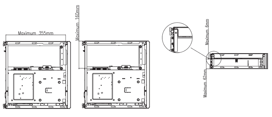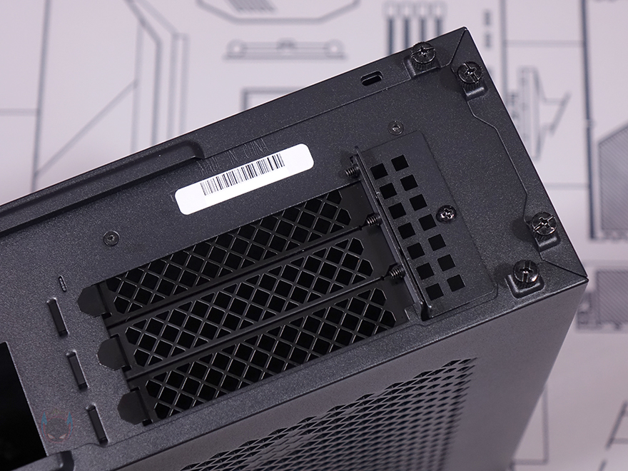 케이스 후면에는 이미 실버스톤의 슬림형 ITX PC케이스를 접해본 소비자라면 후면만 봐도 내부 구조를 대략 짐작할 수 있는데, 한쪽은 메인보드, 나머지 한쪽은 그래픽카드가 장착되는 구조입니다. 그래픽카드가 장착되는 부분에는 PCI 슬롯 3개를 갖추고 있어서 3단 높이의 그래픽카드까지 장착이 가능하도록 지원하는데, 참고로 스펙상으로 62mm 높이까지 지원합니다. 그리고, 메인보드 공간쪽에는 바깥쪽 끝부분에 전원케이블과 연결되는 포트가 적용되어 있으며, 방금 확인했던 사이드 패널과 양쪽 패널이 모두 손나사(Hand-screw)로 고정된 것을 확인할 수 있습니다.