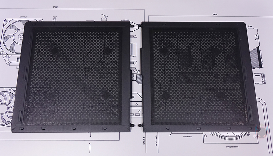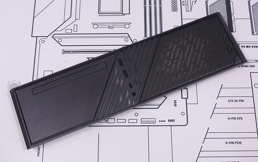 이제 실버스톤(Silverstone) MILO 12 ITX PC케이스의 내부를 살펴보는데, 방금 확인했듯이 사이드 패널과 측면 패널 모두 손-나사로 고정되었기때문에 패널은 모두 분리가 됩니다. 그리고, 사이드 패널 안쪽에는 앞서 언급했듯이 먼지 필터가 부착된 것을 확인할 수 있죠. 뿐만 아니라 전면 베젤 역시 양쪽 그리고 가운데에 각각 한쪽에만 걸쇠 형식으로 장착되어 있어서 걸쇠 부분을 살짝 빼내면 쉽게 분리가 됩니다.
