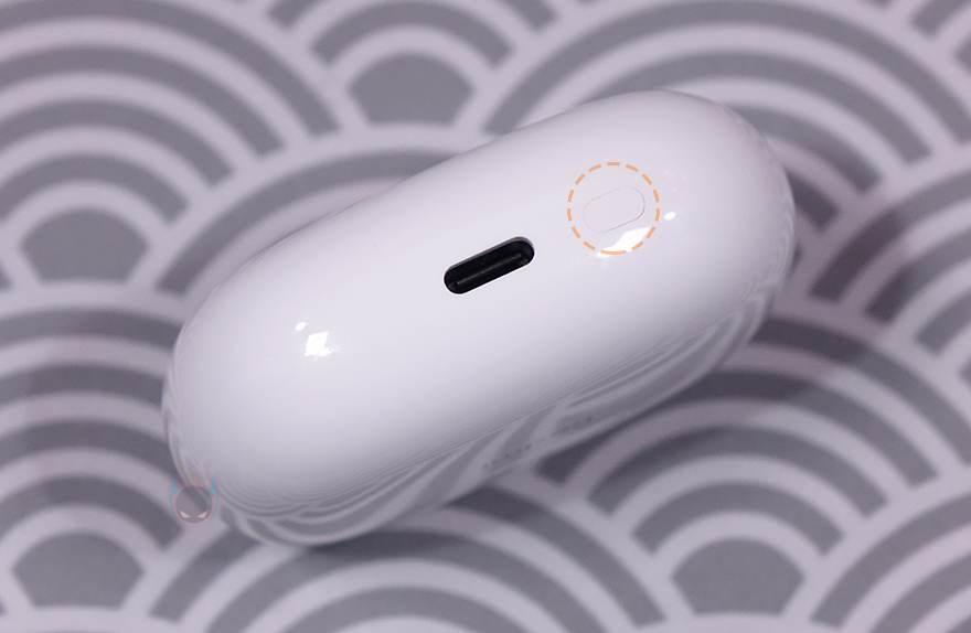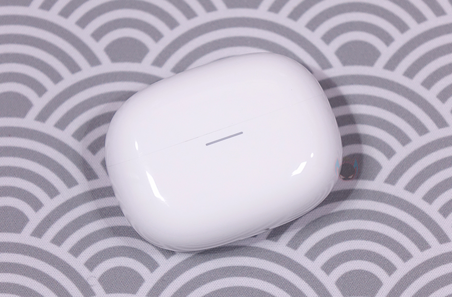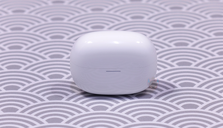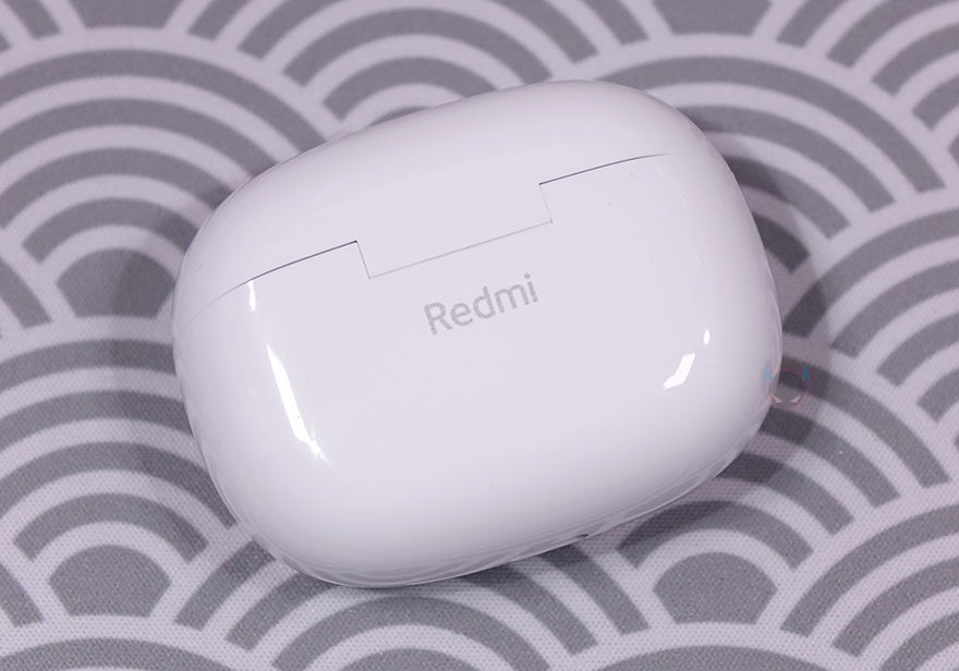 좀 더 자세히 살펴보면, 먼저 충전케이스 같은경우 타원형 디자인에 전면 그러니깐 뚜껑이 열리는 경계 부분 아래에 충전상태를 확인할 수 있는 긴 라이트-바(Light-Bar) LED를 적용했습니다. 그리고, 반대편인 후면은 심플하게 Redmi 로고만 새겨놨죠. 케이스 밑바닥 부분에는 충전케이블과 연결되는 USB 타입 C 포트가 배치되어 있으며, 바로 옆에는 페어링 버튼(Pairing button)이 배치되어 있습니다.