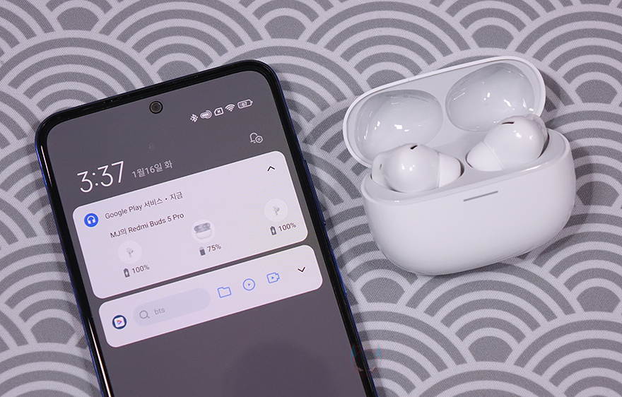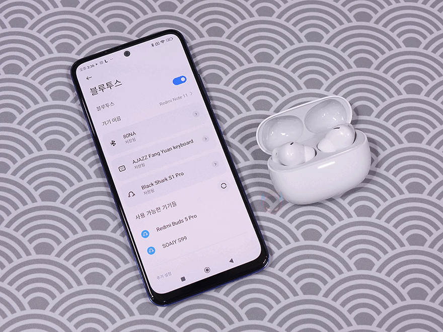 직접, 샤오미 레드미 버즈 5 프로(Redmi Buds 5 Pro) 무선 이어폰을 사용해보면, 모바일기기와 연결방식은 바로 앞시간에 만난 기본 모델과 마찬가지로 2가지 방식으로 연결할 수 있습니다. 일반적인 블루투스 연결방식처럼 모바일기기에서 블루투스 검색을 통해 연결할 수 있는데, 충전케이스를 열면 자동으로 페어링 모드가 시작되며, 이때 충전케이스의 LED 램프가 깜빡입니다. 만약 작동하지 않는다면, 아래 충전포트 옆에 배치된 페어링 버튼을 눌러서 다시 실행시켜 주면 됩니다. 검색을 통해 'Redmi Buds 5 Pro'가 검색되면 연결해 주면 되고, 구글계정에도 저장할 것인지 안내메시지도 나옵니다. 구글계정에 저장이 되면 다른 기기에서 연결할 때도 빠르게 연결할 수 있죠.