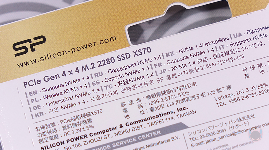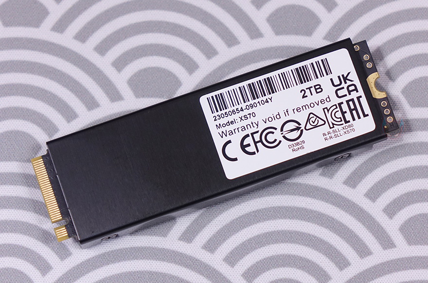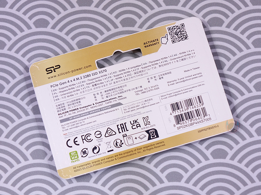 그리고, 패키지 후면에는 한국어를 포함해 다국적 언어로 NVMe 1.4 규격과 보증기간 지원 확인을 위핸 홈페이지 접속 안내 문구를 확인할 수 있는데, 바로 오른쪽에 제품 등록을 할 수 있는 QR코드도 제공해주고 있습니다. 제품 구성은 자사의 다른 제품들과 마찬가지로 해당 모델인 XS70 M.2 NVMe SSD만 포함되어 있죠.