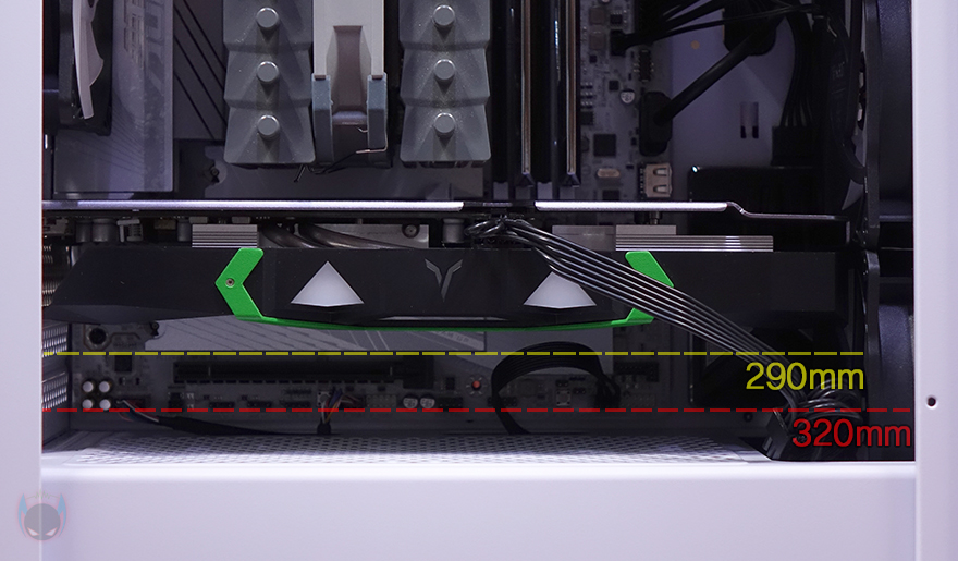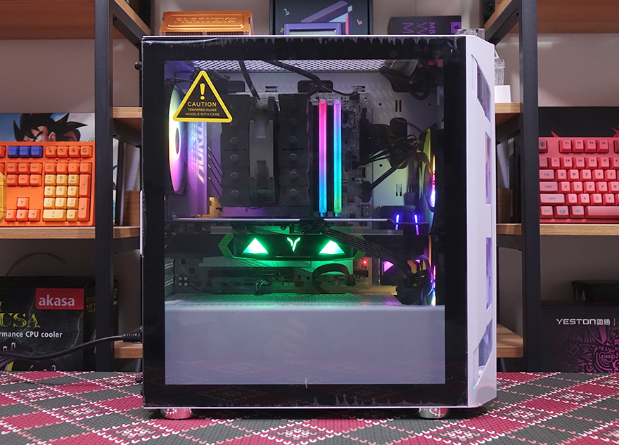 직접, 실버스톤(Silverstone) FARA H1M PC케이스를 사용해 시스템 조립을 해보면, 앞서 잠깐 언급했듯이 FARA H1M은 전형적인 M-ATX 규격의 미니타워 사이즈를 가졌습니다. 그래서, 내부 공간이 넉넉한 편은 아니기 때문에, 규격에 맞는 부품들 중 최대한 작은 사이즈의 부품들을 장착하는 게 공간확보에 유리합니다. 일단, CPU쿨러 같은 경우에는 타워형 쿨러 기준으로 최대 160mm 높이까지 지원하기 때문에 일부 듀얼 타워 쿨러를 제외하면 대부분 장착이 가능하고, 그래픽카드(VGA) 같은 경우에는 전면 기본 장착된 팬을 분리하면 최대 320mm까지 장착할 수 있지만, 팬을 그대로 사용한다면 290mm 정도까지 장착할 수 있습니다. 파워서플라이(PSU) 같은 경우에는 최근 140mm 깊이 제품들이 많이 나오기 때문에 140mm 깊이의 제품을 사용하는 게 선정리공간 확보에도 유리하죠. 규격과 지원 높이 및 길이를 지키면 큰 간섭은 없으며, 케이블 정리는 공간을 확보하는 만큼 수월해질 수 있습니다. 조립 후 PC를 켜면 전면에 기본 장착된 2개의 팬과 후면 팬 모두 ARGB 팬이기 때문에 메인보드 5V ARGB 헤더에 연결해서 연동되는 시각효과를 누릴 수 있습니다.