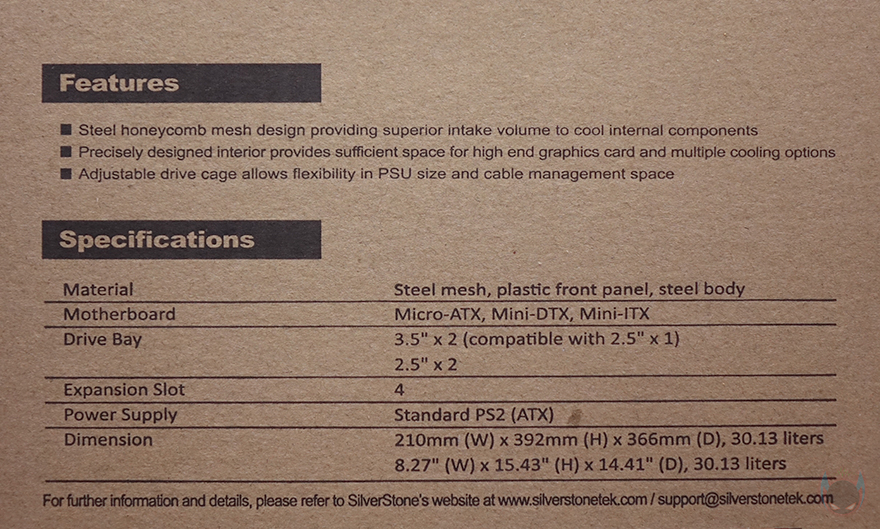 제품 박스는 M-ATX 메인보드 기반의 미니타워 PC케이스이기때문에 작은 편입니다. 그리고, 박스 전후면에는 동일하게 디자인으로 해당 모델의 전면 그림 이미지와 함께 모델명을 표기해 놨는데, 모델명 아래 콘셉트 문구에도 M-ATX 기반과 쿨링을 강조한 표기를 해놨죠. 박스 한쪽 측면에는 한국어를 포함해 다국적 언어로 제품의 주요 특징을 표기해 놨으며, 반대쪽 측면에는 제품의 기본 사양 표기를 해놨는데, 메인보드 규격부터 저장장치 지원, PCI 슬롯, 파워(PSU) 규격, 케이스 크기까지 확인할 수 있습니다.