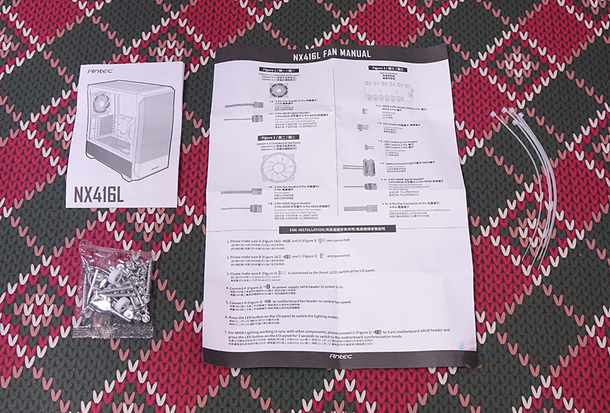 제품 포장은 PC케이스 기본 포장이라 할 수 있는 외부 충격방지의 스티로폼 완충재와 비닐 포장으로 이루어져 있으며, PC케이스를 제외한 나머지 구성품들은 분실이 되지않게 별도의 박스 포장으로 처리되어 있습니다. 구성품에는 제품 설명서, 팬 설명서, 부품 장착에 필요한 각 종 나사들과 케이블 정리에 사용되는 소량의 케이블 타이 제공으로 이루어져 있습니다.