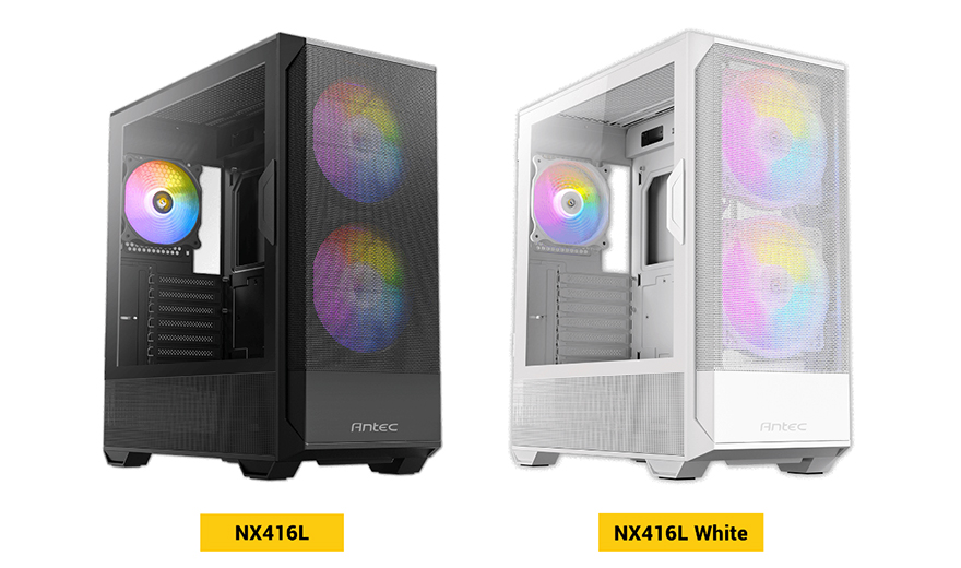 이제 RGB는 PC시장의 기본 트렌드가 되었죠. 그리고, 이를 가장 많이 반영하는 PC 구성품이 바로 PC케이스입니다. 이제는 웬만한 PC케이스에서 RGB, 정확히는 기본 제공되는 팬을 RGB 팬으로 장착해서 나오는 제품들이 흔해졌습니다. 그리고, PC케이스 색상도 이제는 기본 블랙뿐만 아니라 화이트 색상도 함께 나오는 경우가 많아졌죠. 그래서, PC케이스가 기본 세팅으로 잘 잡혀있으면 소비자들은 이에 맞춰서 블랙이나 화이트 콘셉트로 통일감 시켜서 조립 PC를 맞추는 경우가 요즘 트렌드라 할 수 있는데, 최근 안텍(Antec)은 이 2가지 조건을 갖추고 출시한 신제품 PC케이스가 있죠. 바로, NX416L입니다. 그럼, 안텍의 NX416L 미들타워 PC케이스는 어떤 모습을 갖추고 있는지 한 번 살펴보도록 하죠.