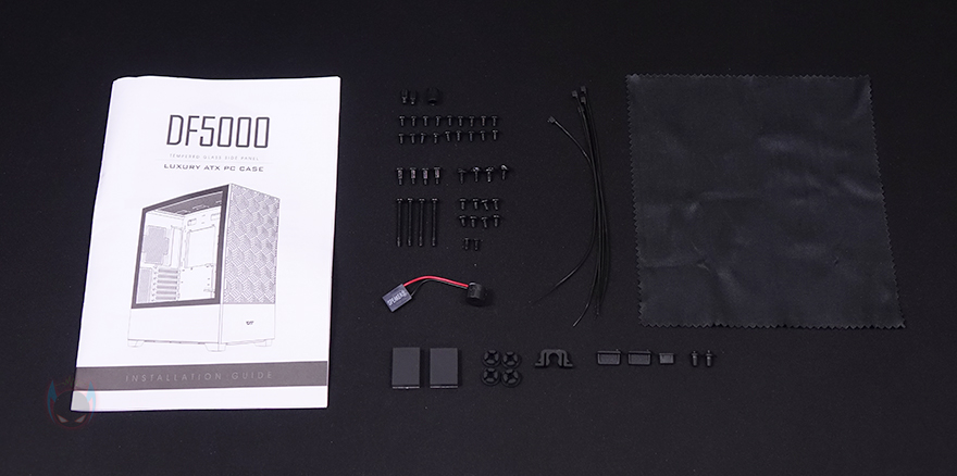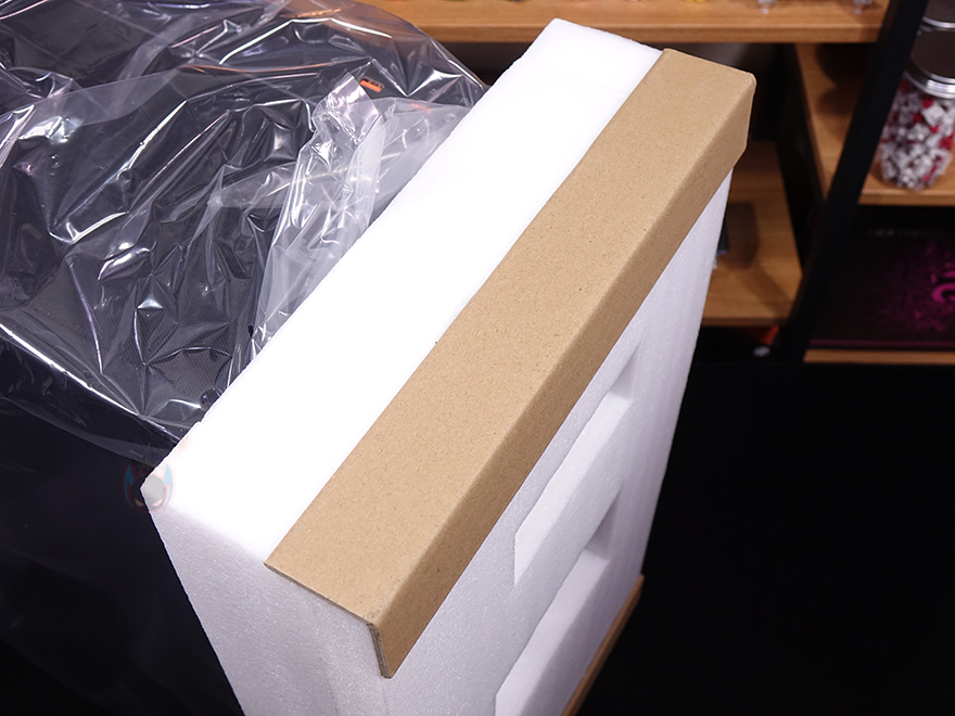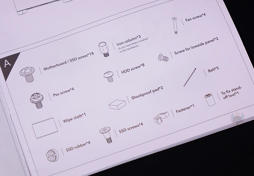 박스를 열어보면, 케이스 포장은 일반 스티로폼보다 좀 더 완충효과가 좋은 우레탄-폼을 사용했는데, 보통 고급형이나 빅타워 제품에서 사용되죠. 방금 언급했던 미들타워에서도 좀 큰 편에 속한다는걸 포장만으로도 짐작할 수 있는 부분입니다. 그리고, 폼-모서리 부분에도 두꺼운 종이 커버를 사용했고, 폼-한쪽에 부속품이 담긴 박스가 끼워져 있죠. 한눈에 봐도 포장에 신경 썼다는 걸 알 수 있습니다. 제품설명서를 비롯한 부속품에는 부품 장착에 필요한 각 종 나사들과 비프음 스피커, 충격방지 패드, 볼-헤드 클램프 부속 여분, 포트 커버, 소량의 케이블타이, 클린천을 제공해주고 있죠. 구성품은 제품설명서에도 상세히 나와있습니다.