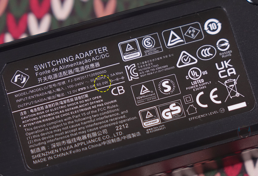끝으로, 제공되는 각 종 케이블들을 잠깐 살펴보면, 먼저 전원어댑터 같은 경우에는 구매 시 EU 플러그로 선택하면 국내에서도 사용이 가능하고, 실제 어댑터 후면에도 KC인증까지 받았습니다. 전력은 최대 60W까지 지원하죠. 다만, EU 플로그 규격이라 국내 콘센트에 연결했을 때는 약간 헐렁하기 때문에 헐렁한 게 싫다면 별도의 돼지코를 함께 사용해야 합니다. 그리고, 원격을 위해서 인터넷 연결에 사용되는 이더넷 케이블은 CAT.6 규격을 가졌습니다.