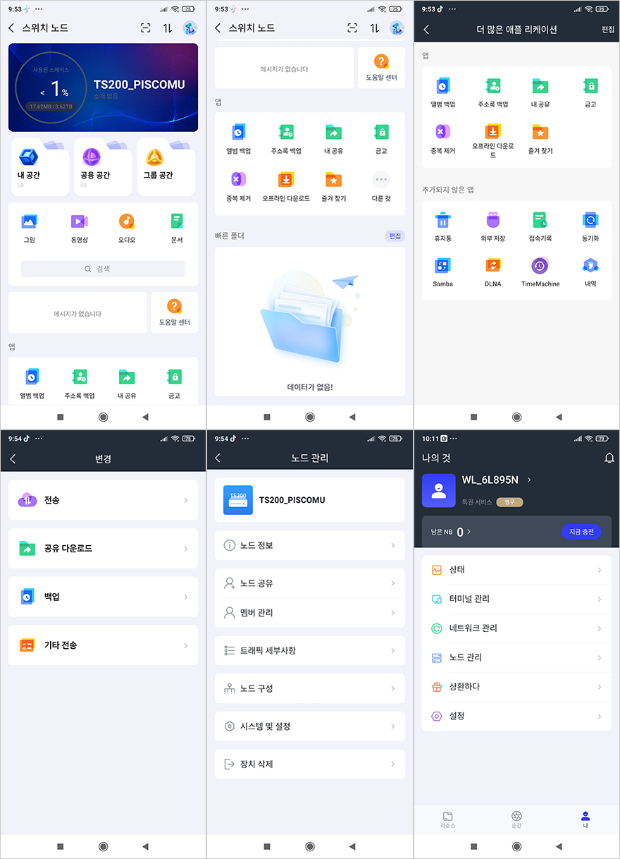 기본설정이 끝나면, Weline 모바일 버전에선 다룰 수 있는 메뉴는 앞서 먼저 만났던 CD3510 외장 케이스와 동일합니다. 모두 한국어를 지원하기 때문에 메뉴를 쉽게 이해할 수 있는데, 저장공간은 3개로 나누어서 다룰 수 있으며, 파일형태에 따라서 그림, 동영상, 오디오, 문서 4개로 구분해서 관리할 수 있습니다. 또한, 이 외에도 백업, 공유, 보안, 즐겨찾기 등의 추가 기능을 설정할 수 있으며, 공유할 수 있는 멤버관리라든지 장치의 상태 등도 모바일 버전에서 다루고 확인할 수 있죠.