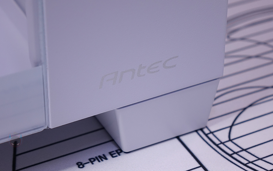 그럼, 본격적으로 Antec(안텍)의 C8 PC케이스를 살펴보는데, 외형부터 살펴보면 색상은 블랙(Black)과 화이트(White) 2가지로 출시했습니다. 그리고, 한눈에 봐도 시작에서 언급했던 파노라마-뷰 케이스에 기준이 되는 강화유리가 전면과 사이드패널 2면에 적용된걸 바로 확인할 수 있죠. 또한, C8 같은 경우에는 뒤에서 확인하겠지만, 파워서플라이가 하단이 아닌 메인보드 트레이 후면에 장착되는 구조로 이런 구조의 어항케이스들은 케이스 너비(W)가 일반 케이스보다 넓습니다. C8 같은경우에는 케이스 너비가 303mm죠. 그리고, 이중 전면에 배치된 강화유리의 너비는 약 222mm를 가졌습니다. 전면 강화유리를 제외한 맨 오른쪽 나머지 일부 샤시 패널 아래에는 심플하게 로고(Logo)만 새겨놨죠.