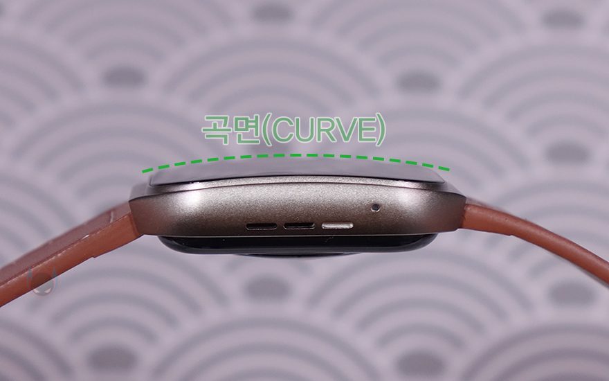 좀 더 부위별로 자세히 살펴보면, 먼저 시계 디자인은 시작에서 잠깐 언급했듯이 블랙샤크는 원형 디자인의 S1 시리즈가 있고, 지금처럼 GT 시리즈(Series)는 사각 라운드 디자인을 가졌습니다. 그리고, 블랙샤크 GT3 같은경우에 화면 크기는 1.96인치 대화면이며, 아몰레드(AMOLED) 디스플레이를 적용했고, 측면에서보면 약간 곡면(Curve)으로 적용된 것을 확인할 수 있습니다. 참고로 화면 테두리인 시계 케이스 재질은 아연합금(Zinc Alloy)이며, 앞서 언급했듯이 이부분에 색상에 따라 2가지 색상으로 구분되는데 사실 실버색상 모델 같은경우에는 실버색상보다는 약간 아이보리색상이 섞인 실버라고 보면 됩니다.