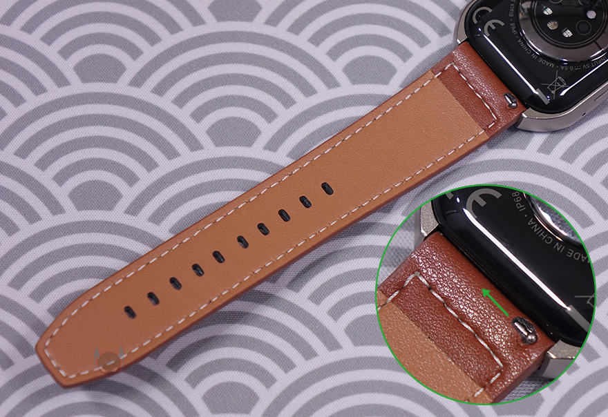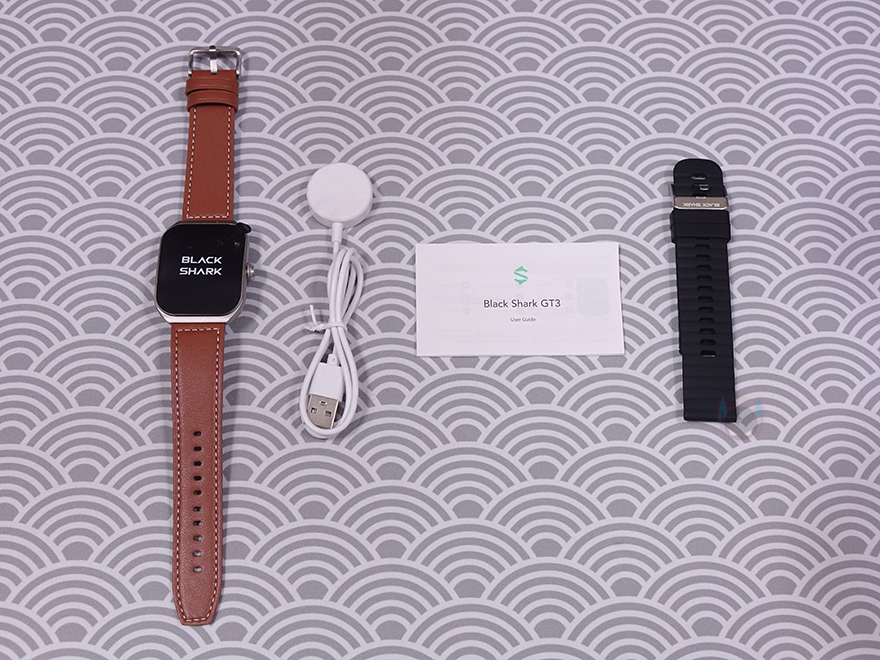 스트랩(Strap)부분은 앞서 언급했듯이 기본 장착된 스트랩 경우 인조가죽 재질이며, 시계 케이스에 색상에 따라 블랙색상을 구입했을시에는 스트랩색상도 블랙인 반면, 실버색상을 구입하면 스트랩 색상은 브라운(Brown) 색상입니다. 전반적으로 품질은 괜찮은 편이며, 가죽 스트랩 경우 손목조절을 할 수 있는 구명이 10개이고, 클립부분에도 BlackShark 로고를 새겨놨죠. 물론, 스트랩 분리도 가능합니다. 다른 샤오미 스마트워치나 앞서 만난 블랙샤크 S1 Pro 스마트워치와 마찬가지로 시계 후면에 스트랩과 연결되는 연결부에 레버-핀을 밀면 쉽게 분리가 되죠. 만약 기본 장착된 가죽 스트랩을 선호하지 않거나 불편하다면 함께 제공되는 유연한 재질의 실리콘 스트랩으로 변경해서 사용하면 됩니다. 참고로 손목조절은 실리콘 스트랩이 더 많습니다. 그리고, 기본 제공되는 전용 충전기 같은경우에는 앞서 만난 S1 Pro와 비슷한 디자인을 가졌지만, GT3에만 사용되고 서로 호환되지는 않습니다.