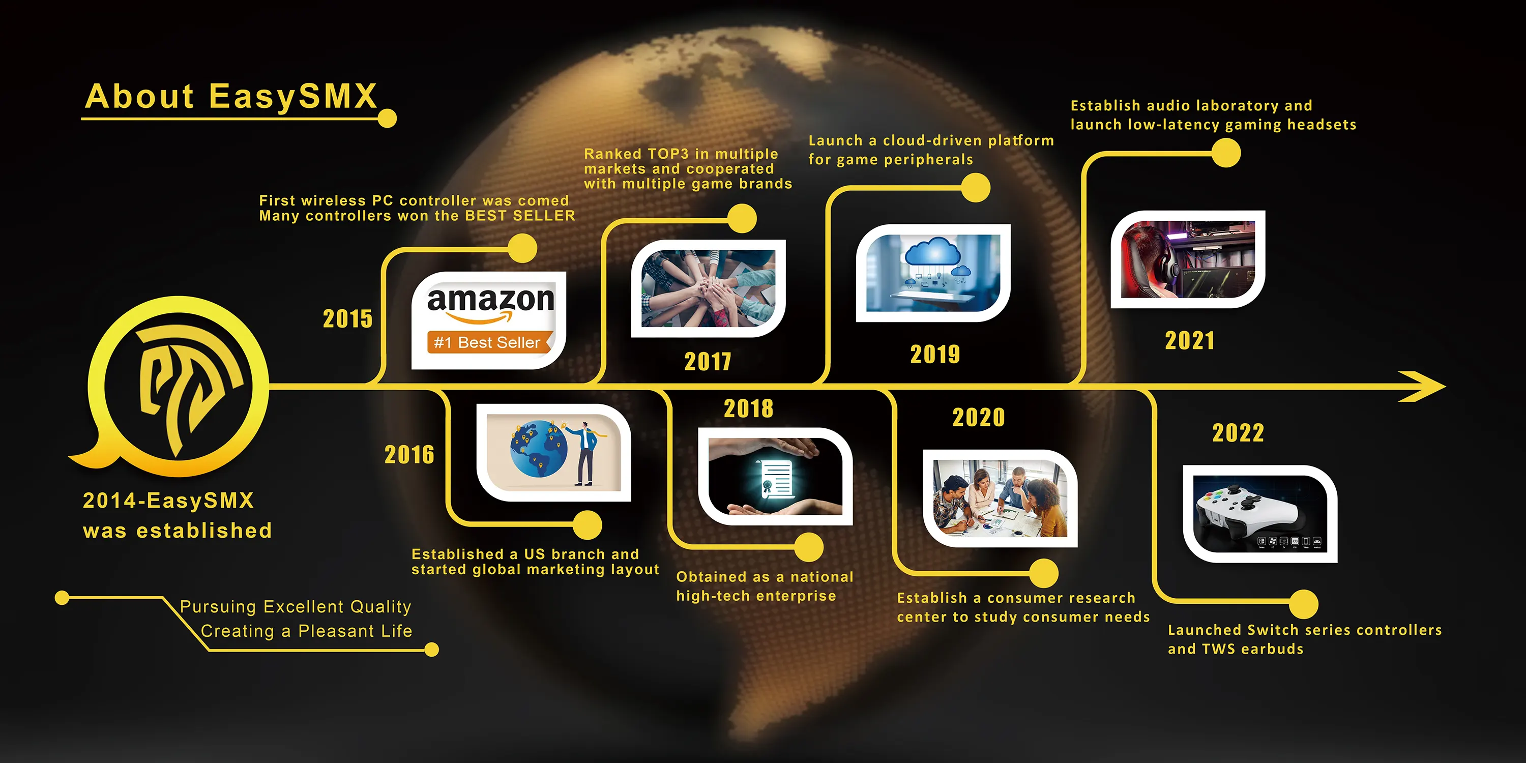 제품을 살펴보기 전에 국내에선 아직 EasySMX 브랜드가 생소할 수 있는 소비자를 위해 잠깐 소개를 하자면, EasySMX는 2014년에 설립되어 올해 10주년을 맞이했습니다. 첫 무선 PC 컨트롤러 제품을 선보이면서 아마존 스토어에 입점하면서 점점 성장을 거두면서 최근까지 다양한 게임 컨트롤러 제품들을 선보이고 있으며, 헤드셋(Headsets) 제품들도 갖추고 있죠. 참고로, 현재까지 출시된 게임 컨트롤러 모델은 15개입니다. 그리고, 국내 소비자들이 해외직구로 많이 이용하는 알리익스프레스에도 이미 공식스토어(https://ko.aliexpress.com/store/2826065)를 갖추고 있죠.