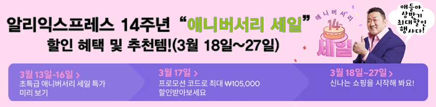 알리익스프레스 14주년 할인행사 '애니버서리 세일' 할인 혜택 및 할인코드(3월 18일부터)