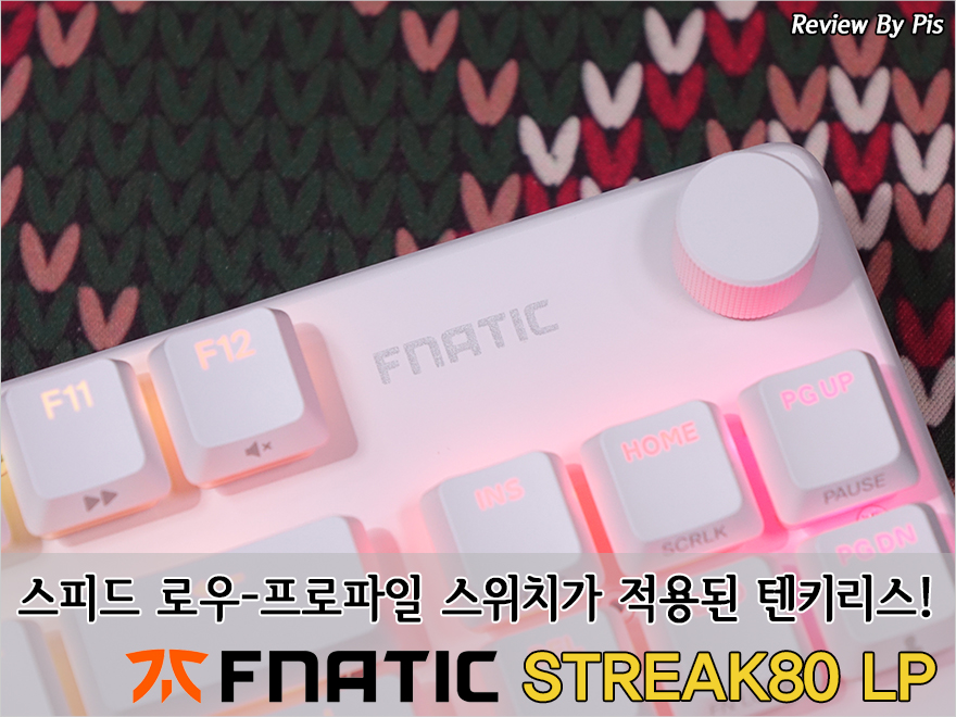 국내 정식수입사인 (주)지티엠코리아를 통해 국내 출시한 프나틱(Fnatic)의 스트릭80 LP 키보드는 이전에 먼저 나왔던 65% 배열의 스트릭65 LP를 잇는 후속 모델이기도 합니다. 앞에 나온 스트릭65 LP가 미니키보드를 선호하는 마니아층을 위한 모델이었다면, 스트릭80 LP는 텐키리스 배열 그러니깐 일반적으로 소비자들이 기계식 키보드를 선택할 때 풀-배열 또는 텐키리스 2가지를 가장 많이 선택한다라는 점에서 대중적인 소비자층을 겨냥해 나온 모델이라 할 수 있죠. 특히, 텐키리스 키보드인데, 로우 프로파일 스위치를 적용한 콘셉트로 슬림한 두께를 자랑해서, 게임을 좋아하면서도 노트북처럼 낮은 키보드 높이를 선호하는 소비자에겐 더욱 끌리게 해주는 제품이라 할 수 있습니다. 흔히 적축이라 부르는 리니어 타입의 로우-프로파일 스위치를 일반 로우-프로파일 스위치보다 짧은 작동거리를 적용해 입력속도를 좀 더 빠르게 높인 만큼 게임 플레이에 좀 더 유용할 수 있죠. 여기에 트렌드를 놓치지 말고 노브(Knob) 컨트롤러를 탑재해 볼륨조절을 즉각적으로 쉽게 다를 수 있고, 낮은 키보드 높이를 가지고 있으면서도 소음을 최소화할 수 있게 흡음재까지 적용했고, RGB 라이트닝 모드, 전용 소프트웨어 지원까지 트렌드와 게이밍 키보드 요소를 부족하지 않게 갖추고 있습니다. 조금 아쉬운 점이라면, 가격대가 있는 만큼 유선 연결방식만 지원해서, 무선과 블루투스까지 겸비했으면 더 좋지 않았을까 생각이 듭니다. 게이밍 키보드와 낮은 높이 키보드 둘 다 선호하는 소비자라면, 스피드 로우프로파일 스위치가 적용된 텐키리스 키보드 프나틱(Fnatic) 스트릭80(Streak80) LP 키보드를 추천합니다.