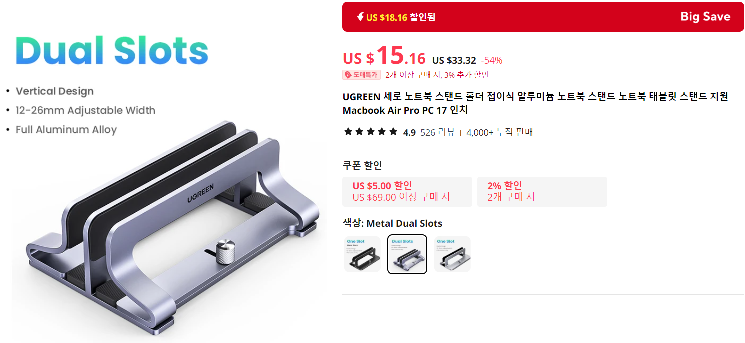 책꽂이형식으로 세워서 거치, 듀얼 슬롯. 배송지연 1달러 쿠폰 있을시 중복적용.