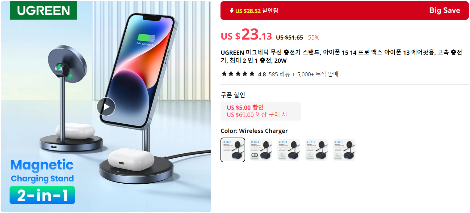 유그린(UGREEN) 알리익스프레스 4월 할인코드 상품 리스트(4월30일까지)
