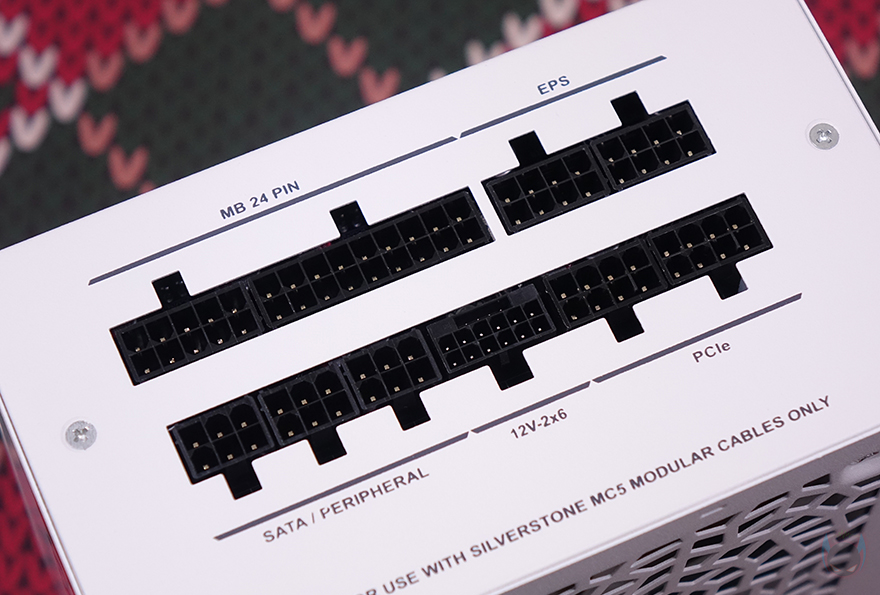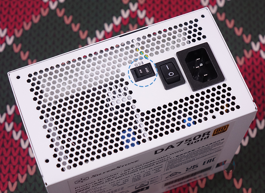 그럼, 본격적으로 실버스톤(Silverstone)의 DA750R Gold 파워서플라이(PSU)를 살펴보는데, 앞서 잠깐 언급했듯이 색상은 블랙(Black)과 화이트(White) 2가지 색상으로 출시되었습니다. 그리고, 요즘 트렌드답게 깊이(depth) 길이도 140mm를 가지고 있죠. 상단에는 내부 쿨링효과를 위해 특유의 패턴 디자인 에어홀 처리와 함께 내부에 120mm 팬이 장착된 것을 확인할 수 있으며, 후면부에는 배기역할로 역시 에어홀이 처리된 것을 확인할 수 있는데, 추가로 무소음 모드 흔히 말하는 제로팬 모드로 할 수 있는 에코(ECO) 스위치도 확인할 수 있습니다. 그리고, 양쪽 측면에는 제품명 라벨을 부착해 놨으며, 바닥 부분에는 제품의 기본 사양표기를 다시 확인할 수 있고, 전면부에는 모듈러 케이블들과 연결되는 커넥터(Connectors)들이 배치되어 있는데, 케이블 연결 구분이 쉽게 되도록 커넥터별로 표기를 해놨습니다.