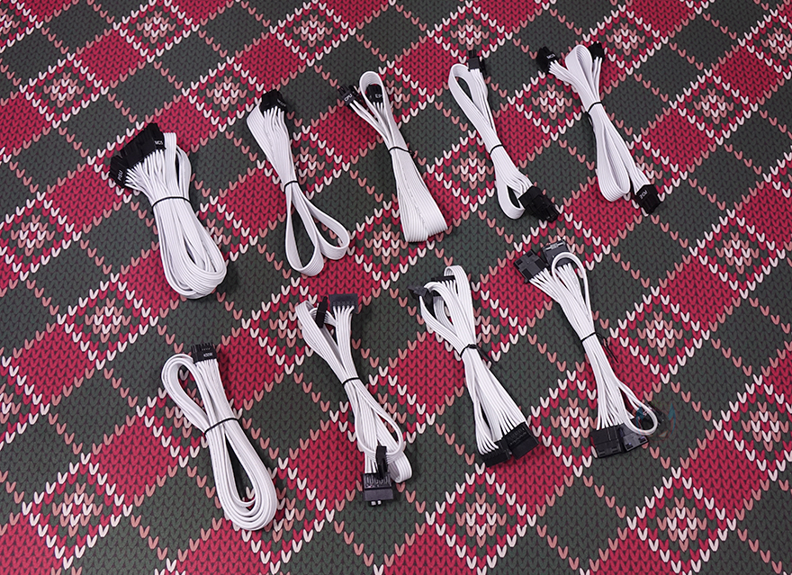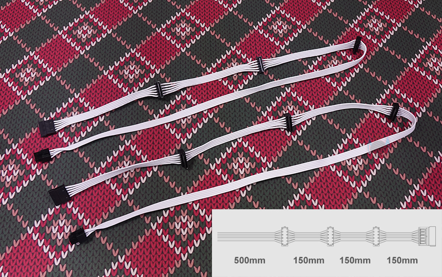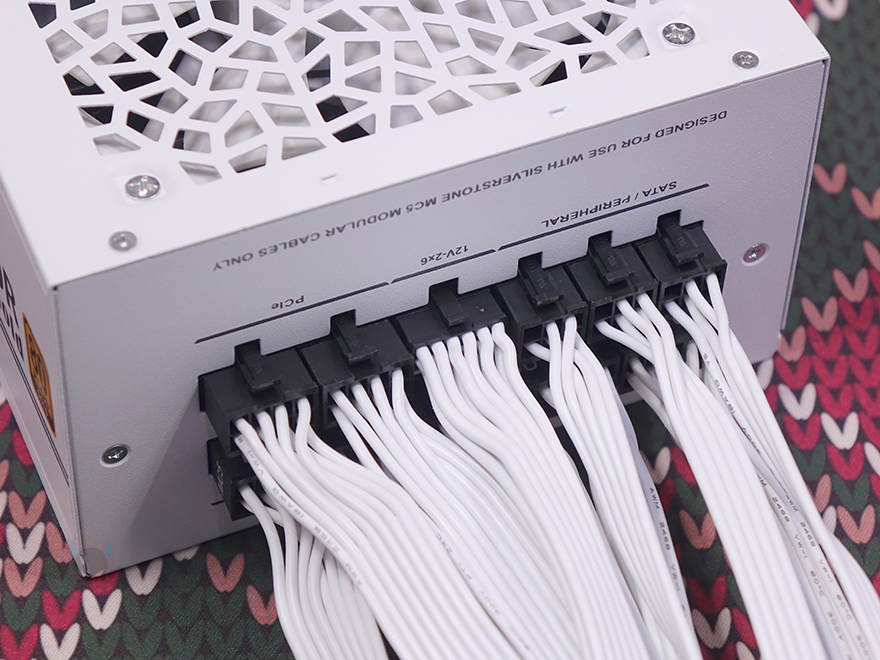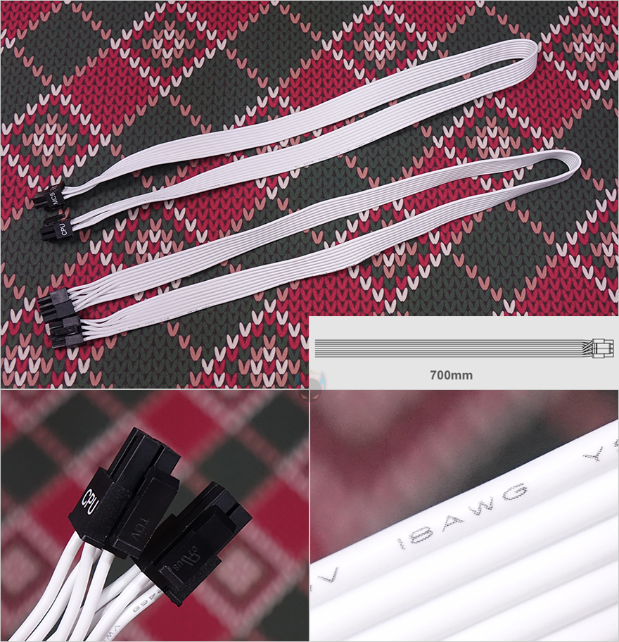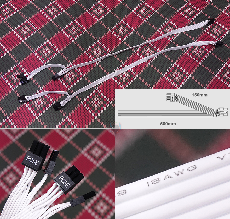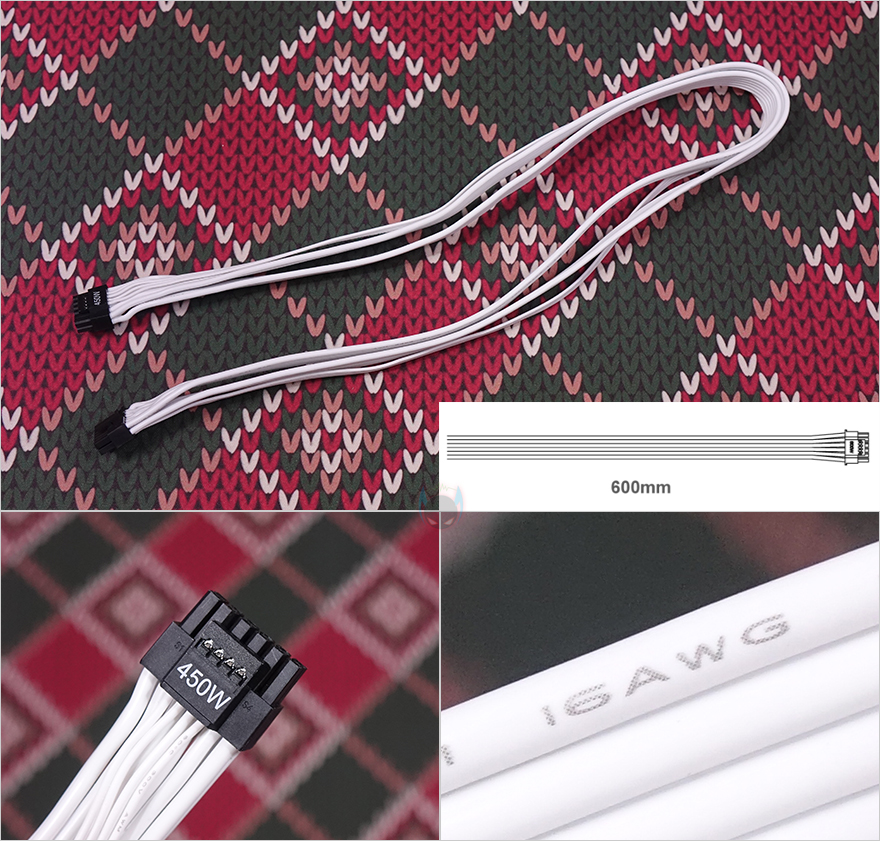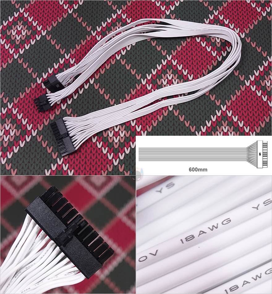 이번엔 모듈러 케이블(Modular cables)들을 살펴보는데, 케이블은 총 9개 구성이며, 모두 플랫(Flat) 타입니다. 특히, 플랫 타입은 PC조립 시 케이블 정리할 때 편리한데, 케이블이 유연할 수 록 편리하죠. 예전부터 실버스톤 파워서플라이의 플랫케이블들은 유연한 걸로 유명한데, 이번 DA750R Gold의 케이블들 역시 유연합니다. 커넥터는 메인보드 24핀(Pin)을 비롯해, CPU 보조전원 8(4+4) 핀 2개, Nvidia 그래픽카드에 사용되고 있는 새로운 PCIe 16핀 보조전원 12 VHPWR 1개, 기본 PCIe 8(4+4) 핀 보조전원 4개, SATA 커넥터 8개, PATA 커넥터 4개 구성으로 750W 용량에서 볼 수 있는 가장 이상적인 커넥터 구성을 갖추고 있습니다. 특히, 12 VHPWR 케이블은 16 AWG 전선 규격을 사용했으며, 나머지 케이블들도 모두 인텔 파워서플라이 가이드에 맞춘 18 AWG 전선규격을 사용했고, 케이블 길이도 요즘 PC케이스에 맞춰 부족하지 않게 갖추고 있습니다.