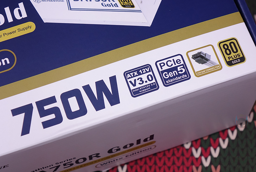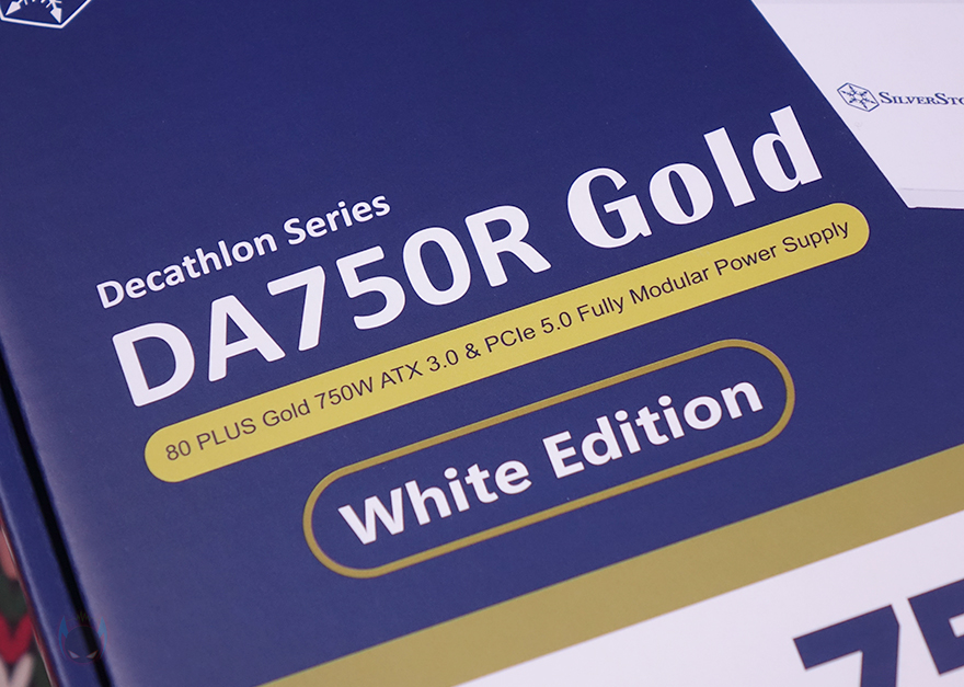 제품 박스부터 살펴보면, 실버스톤의 상징 컬러라 할 수 있는 진한 블루색상을 배경으로 박스 전면에는 제품명과 함께 제품 이미지도 함께 담고 있습니다. 뒤에서 다시 확인하겠지만, 제품명 아래에는 80 Plus Gold 등급과 풀-모듈러(Full Modular) 언급을 해놨죠. 그리고, DA750R Gold 역시 뒤에서 다시 언급하겠지만, 블랙(Black)과 화이트(White) 2가지 색상으로 출시되었습니다. 그래서, 박스 표기에 White Edition 표기를 해놨고, 제품 이미지도 색상에 맞게 담고 있죠. 이외에도 파워용량과 ATX 12V 3.0 규격, PCIe 5.0 지원, 그래픽카드 전용 16 핀인 12VHPWR 커넥터 표기도 추가로 확인할 수 있습니다.