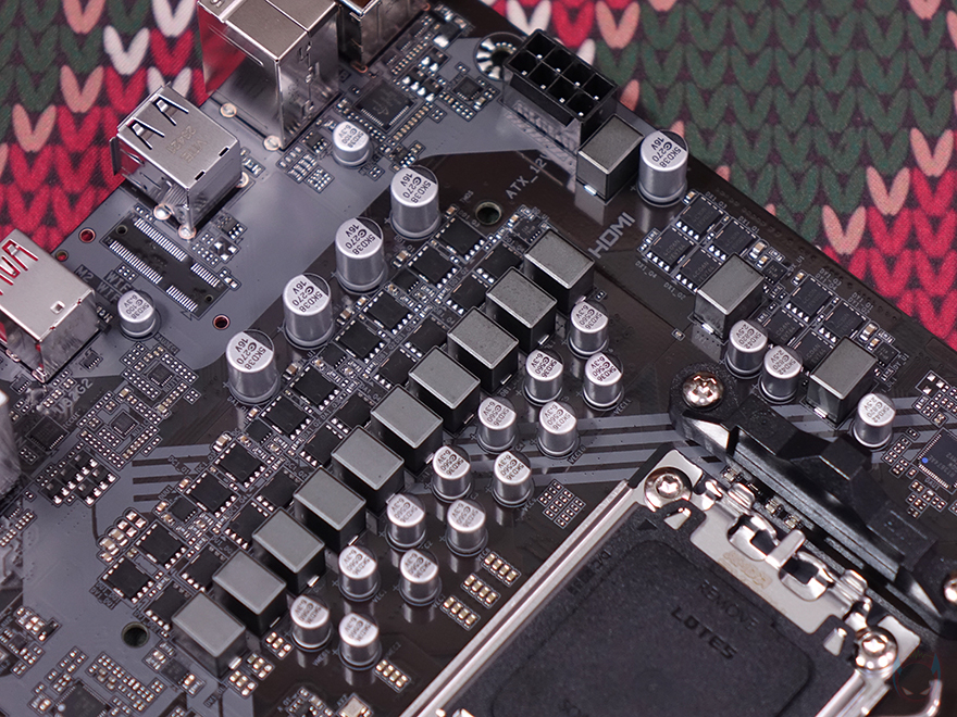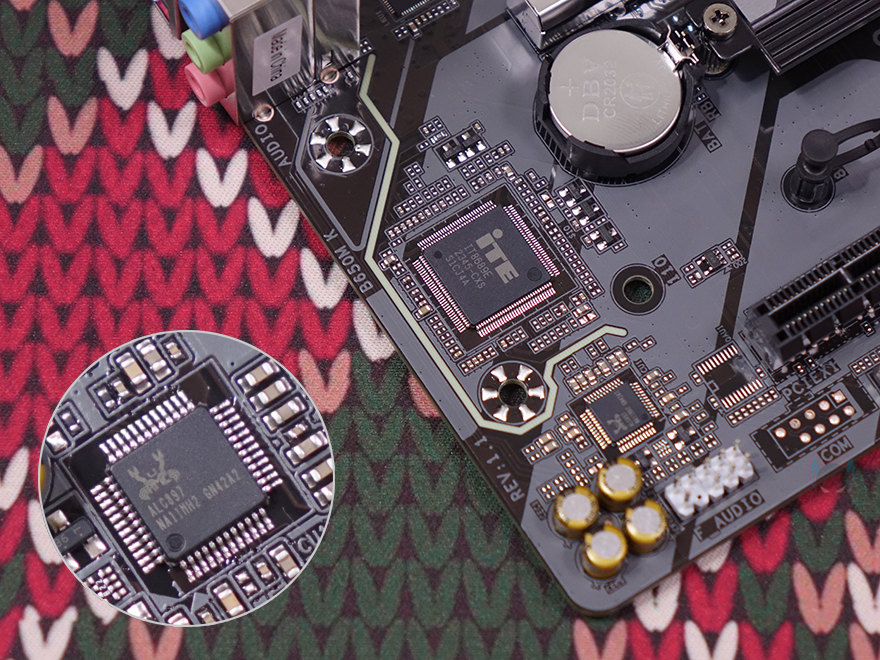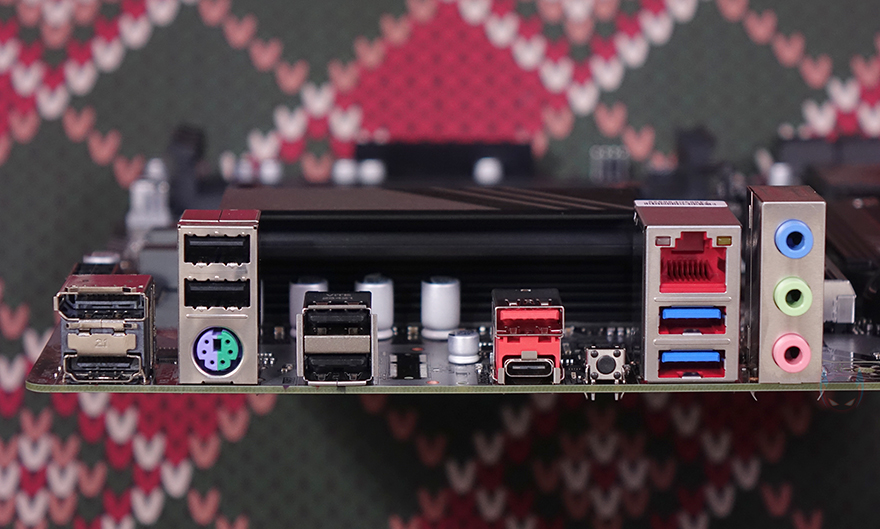 그리고, PCIe 슬롯 밑 메인보드 맨 아래에는 추가로 RGB Sync를 위한 5V ARGB 헤더 1개와 12V RGB 헤더 1개가 배치된 것을 확인할 수 있으며, 메인보드 왼쪽 부분에는 내장 오디오 구간으로 독립 PCB 구간으로 처리했으며, 오디오 칩셋은 가장 많이 볼 수 있는 리얼텍(Realtek) 칩셋이 적용되었습니다. 끝으로, 백패널 I/O 포트 구성 같은 경우에는 모니터 출력 지원에 HDMI와 DP 포트를 비롯해, PS/2 포트, USB 2.0 포트 4개, USB 3.2 Gen2 타입A 포트(빨간색), 앞서 제품박스에 주요 특징에서 확인했던 USB 3.2 Gen2 타입C 포트, USB 3.2 Gen1 타입A 포트 2개, 2.5GbE 랜 포트, 오디오 잭 포트 3개를 구성하고 있습니다. 또한, 보급형 모델임에도 CPU를 장착하지 않은 상태에서 바이오스는 업데이트할 수 있는 Q-Flash Plus 버튼도 배치되어 있죠.