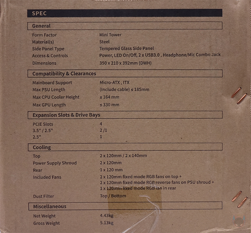 케이스 후면에는 후면 배기역할로 벌집 모양 에어홀 처리와 함께 내부에 120mm 팬이 기본 장착된 것을 간접적으로 먼저 확인할 수 있으며, 아래에 PCI 슬롯은 미니타워 기준인 4개를 갖추고 있습니다. 그리고, 맨 아래 파워서플라이 자리는 상하방향 모두 장착이 가능하도록 나사홀이 처리되어 있죠. 외형 끝으로, 케이스 밑바닥 부분에는 원형 디자인의 높이 약 13.5mm의 받침대가 적용되어 있으며, 파워서플라이 자리에는 분리형 먼지필터가 장착되어 있으며, 분리하면 에어홀처리를 확인할 수 있습니다. 그리고, 앞자리 부분에는 내부 HDD베이 위치를 변경할 수 있게 분리형으로 적용된 것을 미리 확인할 수 있죠.