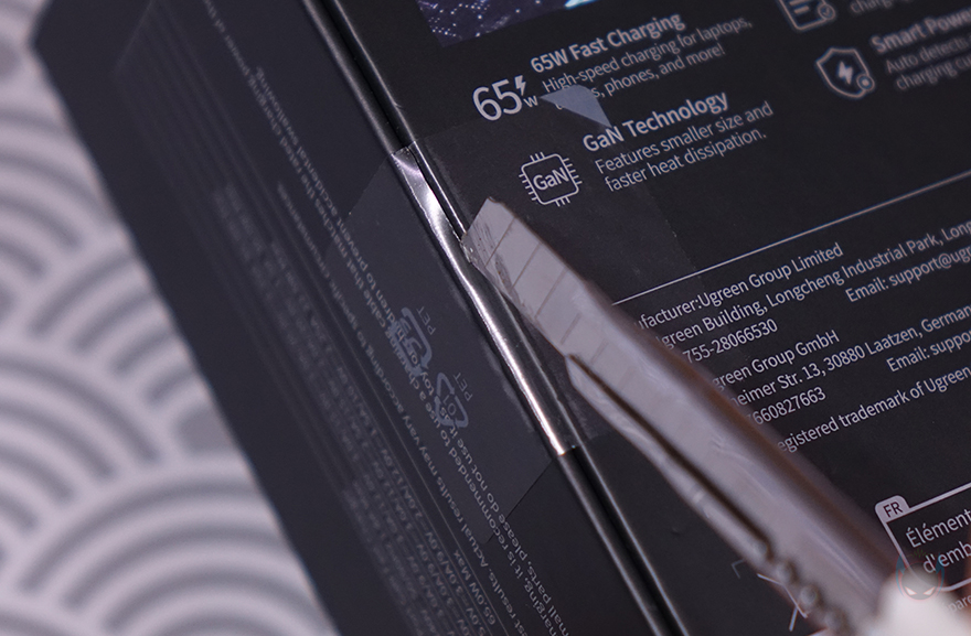 박스 후면에는 추가로 제품의 특징을 표기하고 있는데, 65W 고속충전 지원과 PD 3.0, QC 3.0 지원으로 폭넓은 호환성, GaN(질화갈륨) 방식 충전, 스마트 배전 언급을 확인할 수 있습니다. 또한, 후면 양쪽에는 동봉씰이 붙어있으며, 박스를 열어보면 내부 포장도 제품 색상에 따라 포장재를 사용했습니다. Nexode RG 65W 고속 충전기를 제외하면 나머지 구성품들은 동일한데, 제품설명서, 보증서로 간단하게 이루어져 있죠. 그리고, 개봉 시 충전기 전면에 LED 디스플레이 부분에는 보호비닐이 부착되어 있습니다.