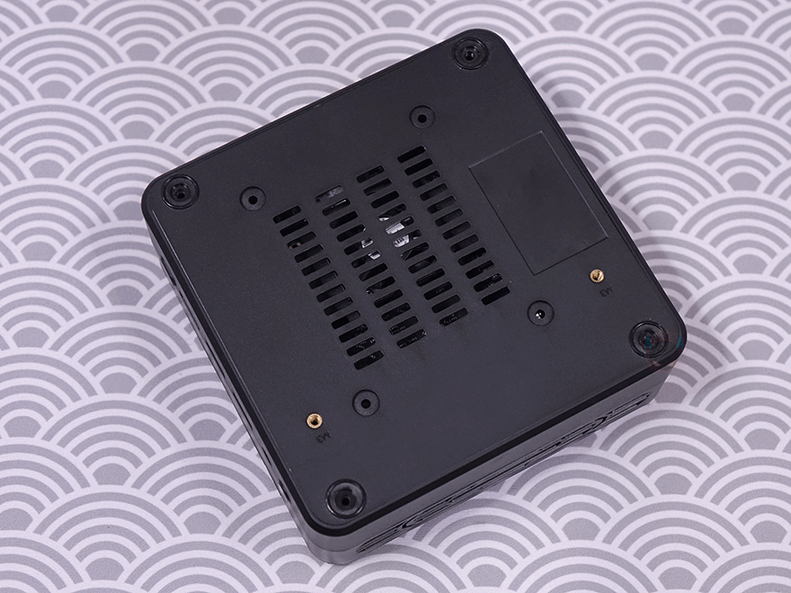 본체 후면에는 각종 포트들이 배치되어 있는데, 왼쪽부터 전원 어댑터와 연결되는 DC 포트, 랜(LAN) 포트 2개, HDMI 포트 1개, DP(Display Port) 1개, USB 2.0 포트 2개입니다. 조금 눈에 띄는 점이라면 전원 DC 포트 규격이 USB Type-C 포트 규격이라는 거죠. 그래서, 뒤에서 확인하겠지만, 전원어댑터의 연결 인터페이스 역시 USB Type-C로 갖추고 있습니다. 또한, 랜 포트 같은 경우에도 듀얼(Dual)인데, 1개는 2.5 GbE까지 지원합니다. 물론, 모니터 출력의 HDMI와 DP 포트도 4K 해상도를 지원하죠.