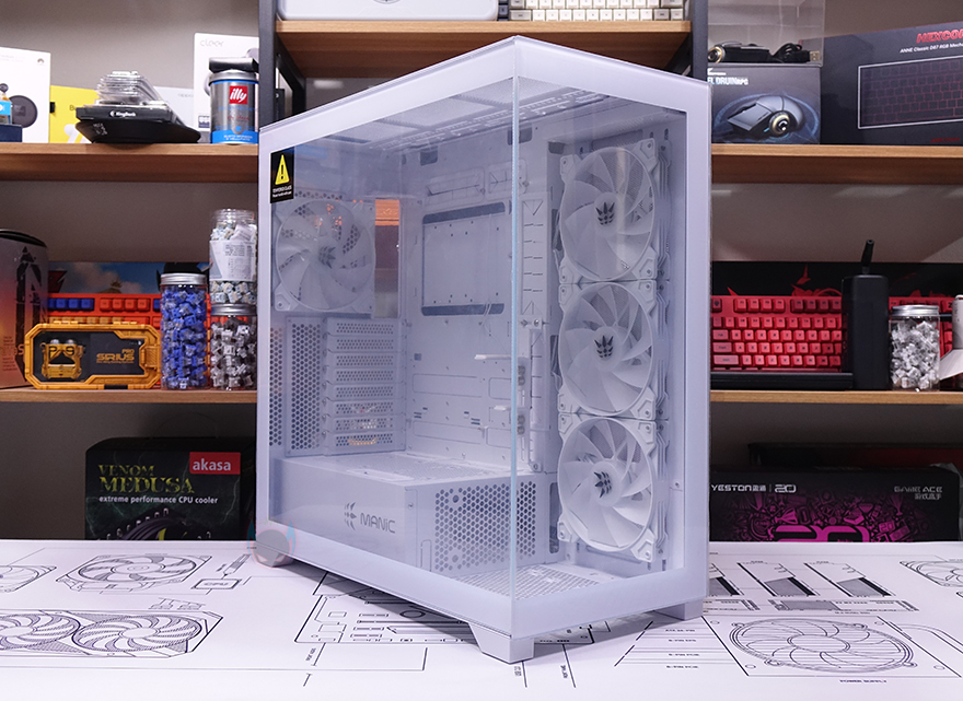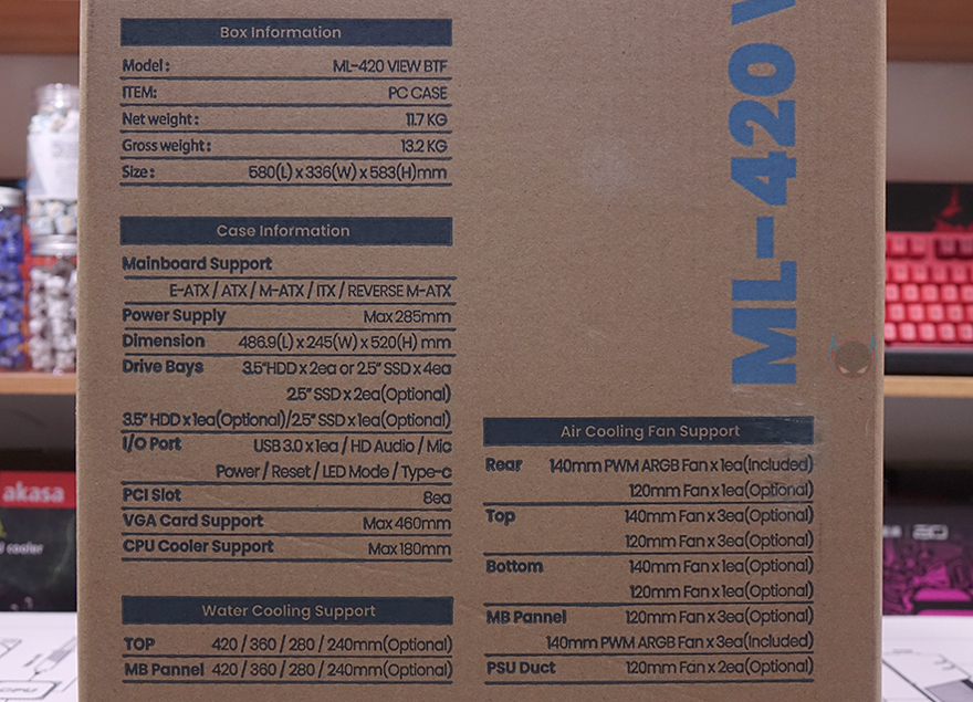 마이크로닉스의 ML-420 View BTF PC케이스는 제품 이름에서도 알 수 있듯이, 전면과 측면으로 이어지는 파노라마-뷰의 일명 어항케이스 콘셉트와 점점 앞으로 더 많이 출시된 BTF 메인보드를 발빠르게 적용한 제품입니다. 특히, 미들타워 케이스임에도 측면과 상단에 팬 기준시 140mm 팬 최대 3개, 수랭쿨러시 최대 420mm 라디에이터를 장착할 수 있는 점은 이 제품의 또 다른 매력이라 할 수 있죠. 어항케이스 특성상 쿨링 성능이 약해질 수밖에 없는 부분을 쿨링시스템을 최대한 갖출 수 있게 지원했습니다. 그래서, 기본 팬도 모두 140mm 팬으로 4개 제공이죠. 여기에 하단에도 추가로 소비자가 쿨링시스템을 갖출 수 있게 지원하고 있으며, 분리형 PCI 슬롯으로 라이저카드&케이블만 있으면 그래픽카드를 수직으로 장착할 수 있고, 기본 제공되는 그래픽카드 지지대 역시 위치에 따라 변경해서 사용할 수 있습니다. 또한, 케이블 정리공간 역시 넉넉한 공간과 함께 기본 케이블들을 홀더 장치와 함께 깔끔하게 정리해 놓아서, 소비자가 장착하는 부품들만 홀더에 함께 정리하면 되기 때문에 초보자도 쉽게 케이블 정리를 할 수 있습니다. 미들타워지만 내부 공간이 넓은 만큼 사실상 준빅타워급이기때문에, 미들타워 어항케이스로 확실한 쿨링시스템을 갖추고 싶다면, 마이크로닉스 ML-420 View BTF PC케이스를 추천합니다.