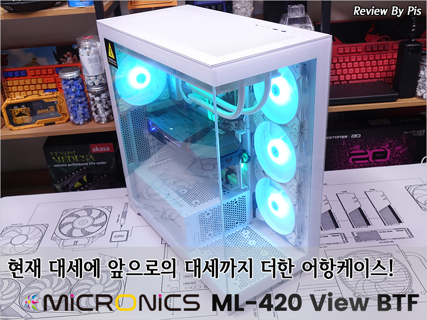 최근 PC시장의 트렌드는 해마다 새로운 트렌드가 등장하는 추세입니다. 특히, PC케이스 시장의 트렌드는 누가 뭐래도 파노라마-뷰 일명 어항케이스죠. 기존에도 케이스 측면에는 강화유리가 적용되고 있었지만, 전면까지 강화유리가 적용되면서 시각-뷰가 더 넓어진 것이 어항케이스의 특징이고, 작년 본격화되면서 올해는 대세로 자리 잡았죠. 그리고, 올해 여기에 또 하나 새롭게 추가되고 있는 트렌드가 있는데 바로, BTF입니다. 정확한 명칭은 아니지만, 메인보드/그래픽카드로 유명한 ASUS에서 가장 먼저 내세웠기 때문에 통상적으로 BTF라고 표현하고 있는데, BTF는 Back to the Future의 약자로 메인보드에 배치되는 각 종 전원연결 커넥터들을 후면으로 배치된 제품을 명하는데, 이런 BTF 메인보드를 사용하기 위해서는 PC케이스 역시 BTF에 맞춘 규격을 적용해야 합니다. 그래서, 최근 PC케이스 제조사들 중 일부는 발 빠르게 적용하고 있는데, 국내 PC케이스 브랜드인 마이크로닉스(http://www.micronics.co.kr/) 역시 이 2가지 트렌드를 적용한 PC케이스를 출시했죠. 바로, ML-420 View BTF입니다. 그럼, ML-420 View BTF는 어떤 케이스인지 한 번 만나보도록 하죠.