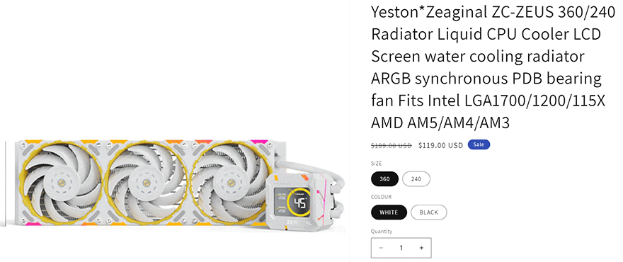 Zeaginal Zeus XT all -in -one water cold radiator, LCD screen, wireless splicing halo light -efficient fan,Support LGA1700/AM5 -