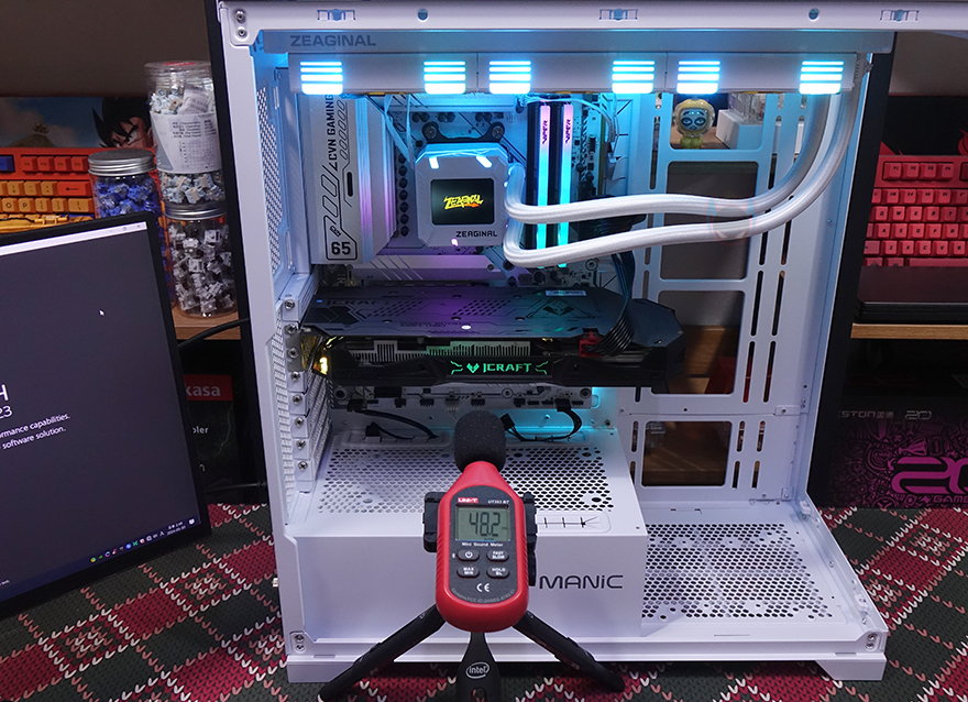 먼저, CPU 온도를 통한 ZC-ZEUS XT 360 수랭쿨러의 쿨링 성능은 일체형 수랭쿨러답게 좋은 성능을 보여줍니다. 듀얼 타워 공랭쿨러들과 비교했을 때 Load와 Idle 모두에서 가장 낮은 온도를 보여줬습니다. 그리고, 라디에이터에 3개의 팬이 기본 장착되어 있는데, 팬 같은 경우 Load 상황에선 스펙상의 속도보다 더 높은 2600 RPM대까지 작동했는데, 팬 소음으로 보면 듀얼 팬이 장착되는 듀얼 타워 쿨러와 큰 차이를 보이지는 않습니다. 물론, 수랭쿨러라서 워터블록의 펌프소리도 포함된 것이기 때문에 이런 점을 고려했을 때 팬과 펌프 작동대비 소음은 무난하다 할 수 있죠. 끝으로, 쿨링 성능에 따른 CPU 최대 클럭 수치를 확인해 보면, 가장 낮은 CPU 온도를 보여준 만큼 클럭에서 가장 높은 수치를 보여줘서, 쿨링 성능이 좋으면 CPU 성능이 좀 더 올라갈 수 있음 그대로 반영해 줍니다.