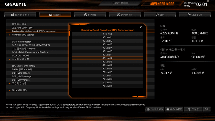 그리고, B650M D3HP 메인보드는 B650칩셋 기반이기때문에, 최신 라이젠 7000 시리즈 CPU를 완벽하게 지원하고 있는데, 특히 현재 가장 인기 있는 라이젠 7 7800X3D CPU 같은 경우에도 소비자들이 최적으로 설정하는 커브옵티마이저로 적용해 완벽하게 작동하죠. 물론, CPU 발열 해결을 위해서 쿨링 성능이 뒷받침되어야 합니다.