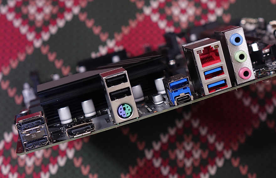 끝으로, B650M D3HP 메인보드 아래 맨 왼쪽에는 내장 오디오 위치로 독립구간 PCB로 처리되어 있으며, 칩셋은 리얼텍(Realtek)사입니다. 그리고, 백패널 I/O 포트구성을 살펴보면, 눈에 띄는 부분이 있는데 바로 모니터 출력포트로 HDMI 1개, DP 2개죠. 바로 상위모델인 B650M K보다 DP 포트가 1개 더 많아, 최대 3개의 모니터를 연결할 수 있습니다. 물론, 4K 해상도까지 지원하죠. 이밖에도 USB 2.0 포트 2개, PS/2 포트, USB 3.2 Gen1 포트 3개, USB 3.2 Gen1 타입C 포트 1개, 2.5 GbE 랜 포트 1개, 오디오 포트 구성으로 지원해주고 있습니다.