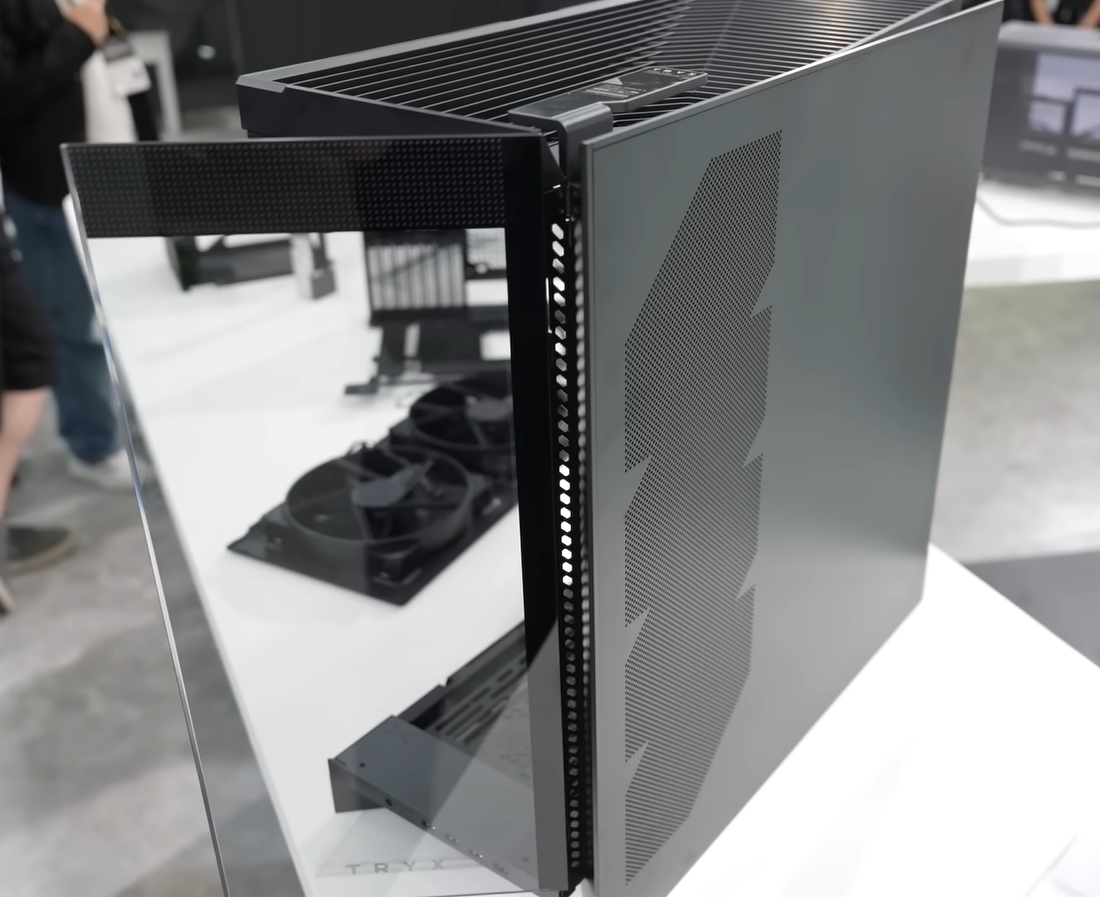 그리고, TRYX의 첫 PC케이스인 루카(LUCA)도 이번에 전시를 했는데, 역시 이미 중국 현지에선 출시된 상황이며, 루카 PC케이스는 하이엔드 미들타워로 블랙과 화이트 2가지 색상으로 출시되었으며, 별도의 파워서플라이 브라켓을 적용해 위아래 위치변경을 할 수 있으며, 메인보드 트레이 역시 분리가 가능해 뒤집어 사용할 수 있다. 그리고, BTF 홀도 이미 다 적용된 상태이다. 또한, 전면과 측면에 강화유리가 적용되었는데, 전면 강화유리는 도어 방식으로 기존 제품들과 차별화를 주었으며, 추가로 전면 패널을 메쉬 버전으로 변경해서 사용할 수 있다.