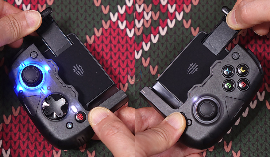 직접, Nubia Redmagic Double Blade(누비아 레드매직 더블 블레이드) 모바일 게임패드를 사용해보면, 이 제품은 스마트폰과 블루투스 방식으로 연결되는데, 양쪽 패드에 스마트폰을 고정해 주는 클램프(Clamp)가 늘어나면 자동으로 전원이 켜지는(Power on) 형태라 전원이 켜짐과 동시에 블루투스 페어링이 시작됩니다. 그래서, 패드에 스마트폰을 장착하는 순간 바로 페어링 연결을 시도하면 되고, 클램프가 늘어나는 범위는 앞서 제품 박스 표기에서 확인했듯이, 68~95mm입니다. 그러니깐 스마트폰 길이는 제한이 없고, 폭만 제한이 있는 거죠. 사실상 현재 시중에 판매되는 모든 스마트폰은 다 장착이 됩니다. 그리고, 전원이 켜짐과 동시에 앞서 언급했던 양쪽 조이스틱 테두리 라인에 RGB 라이트닝 효과도 바로 볼 수 있죠. 조금 아쉬운 점이라면, 이 제품 역시 Nubia의 액세서리 제품군이기 때문에 공용 어플(App)인 Goper를 지원하는데, 아직 최신 버전이 나오지 않아서 Goper 앱 사용은 좀 더 기다려야 합니다. 참고로, Goper 앱에서 지원되기 시작하면, RGB 라이트닝 효과나 컨트롤 기능을 사용자가 설정할 수 있습니다.