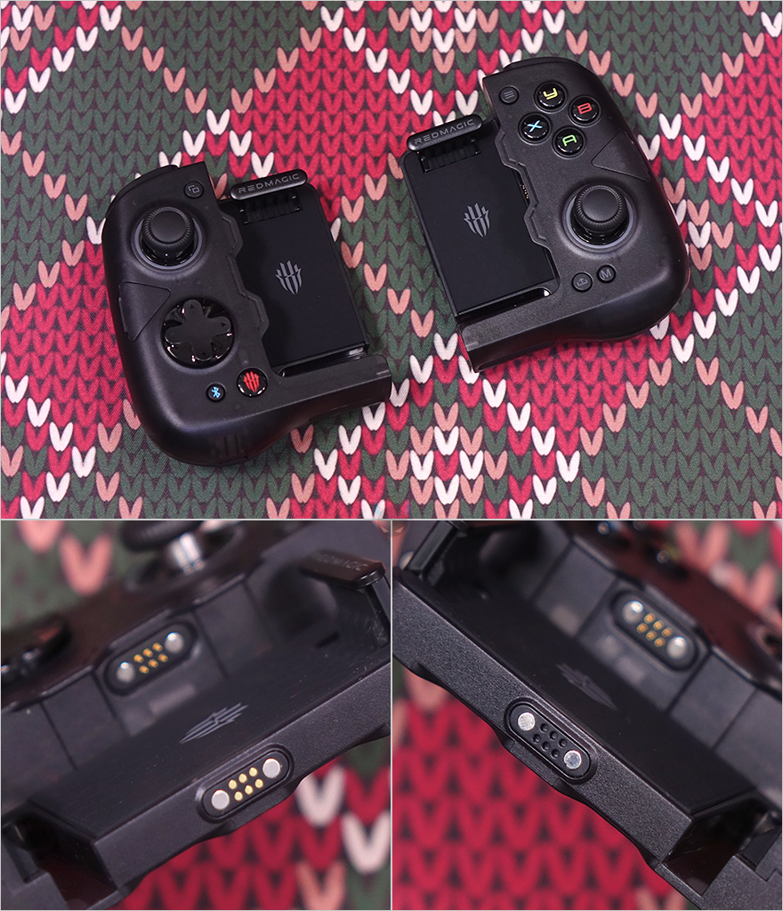 그럼, 본격적으로 Nubia(누비아)의 Redmagic Double Blade(레드매직 더블 블레이드) 게임패드를 살펴보는데, 앞서 제품 박스 후면에서 먼저 간접적으로 확인했듯이 이 제품의 가장 큰 특징은 패드가 분리형입니다. 그래서, 개봉시 파우치에서 꺼내면 패드가 결합된 상태로 있죠. 자석방식(Magnetic)으로 결합된 거라 양손으로 각각 패드를 잡고 벌리면 쉽게 분리가 됩니다. 기존에 일반적인 모바일 게임패드는 일체형으로 스마트폰 장착을 위해 길이가 늘어나는 방식이었다면, Redmagic Double Blade는 아예 분리된 형태로 스마트폰 길이에 대한 제한을 없애버렸죠.